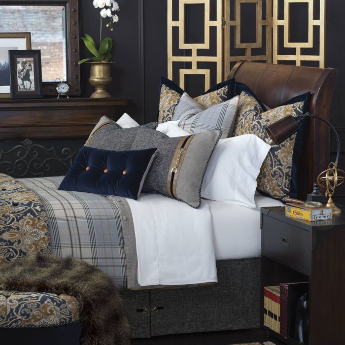 Get whisked away to a 19th-century aristocratic mansion with luxurious Arthur. Its handsome plaids create a tailored backdrop worthy of Savile Row’s bespoke suit makers while richly colored floral textiles recall sumptuous medallion-pattern rugs.