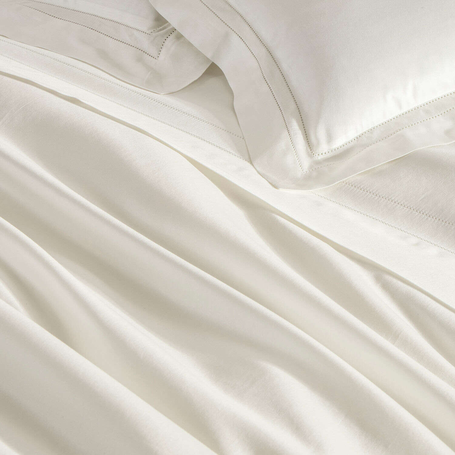A sheet set featuring Frette's signature double open hemstitch on soft, smooth and lustrous cotton sateen. Doppio Ajour's elegant and versatile design is a perennial favourite among designers and architects. Pure extra long-staple cotton.