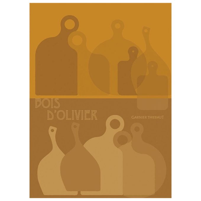 Planches d'Olivier Safran: featuring warm yellow and brown tones with a design of cutting boards, this cotton towel brings rustic charm to your kitchen;