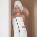 The Portobello Spa Towel Wrap is designed to provide immediate comfort after bathing or spa treatments. Made to order from Egyptian GIZA cotton, it features an elegant scalloped trim and adjustable buttons that allow the wrap to fit the body comfortably, ensuring practicality.