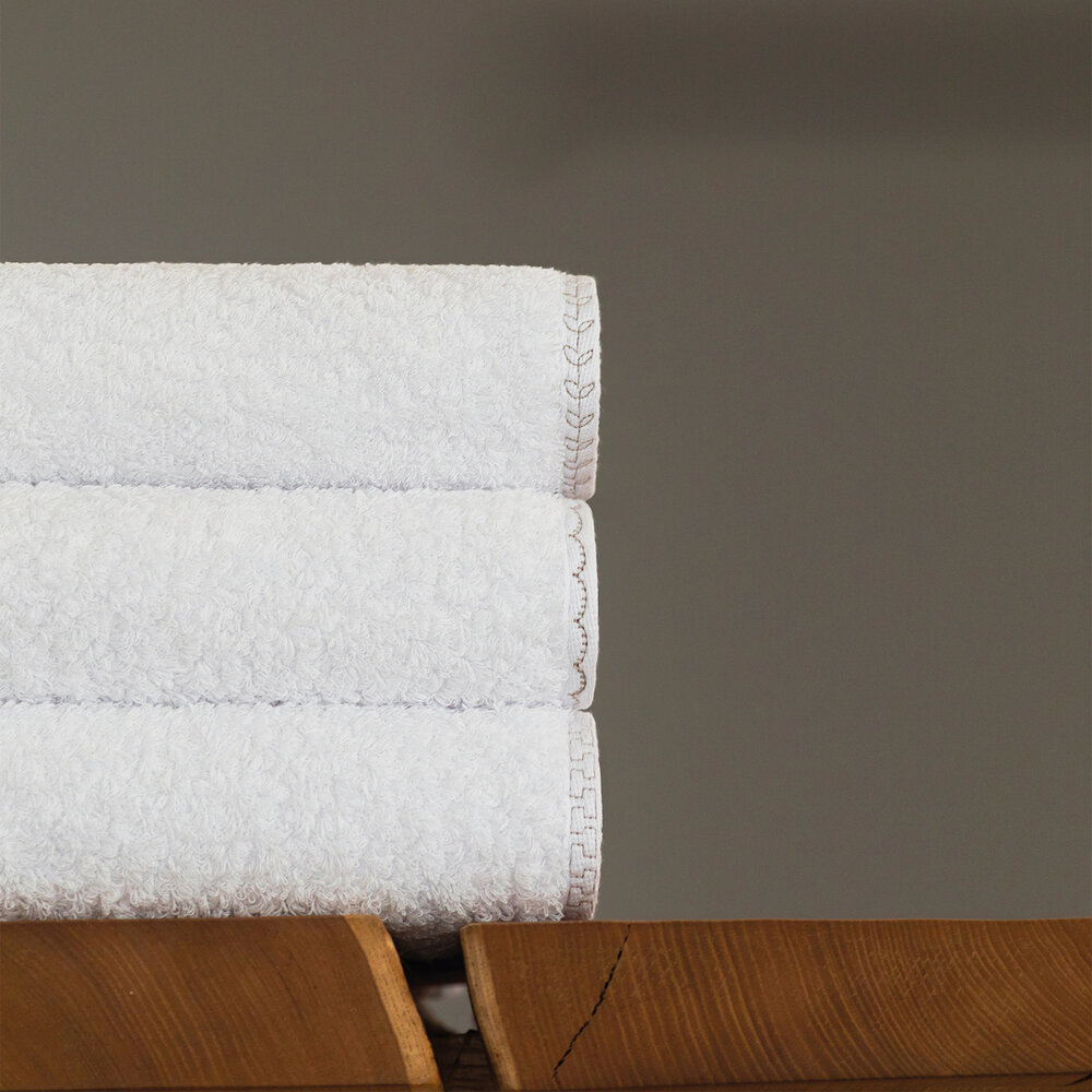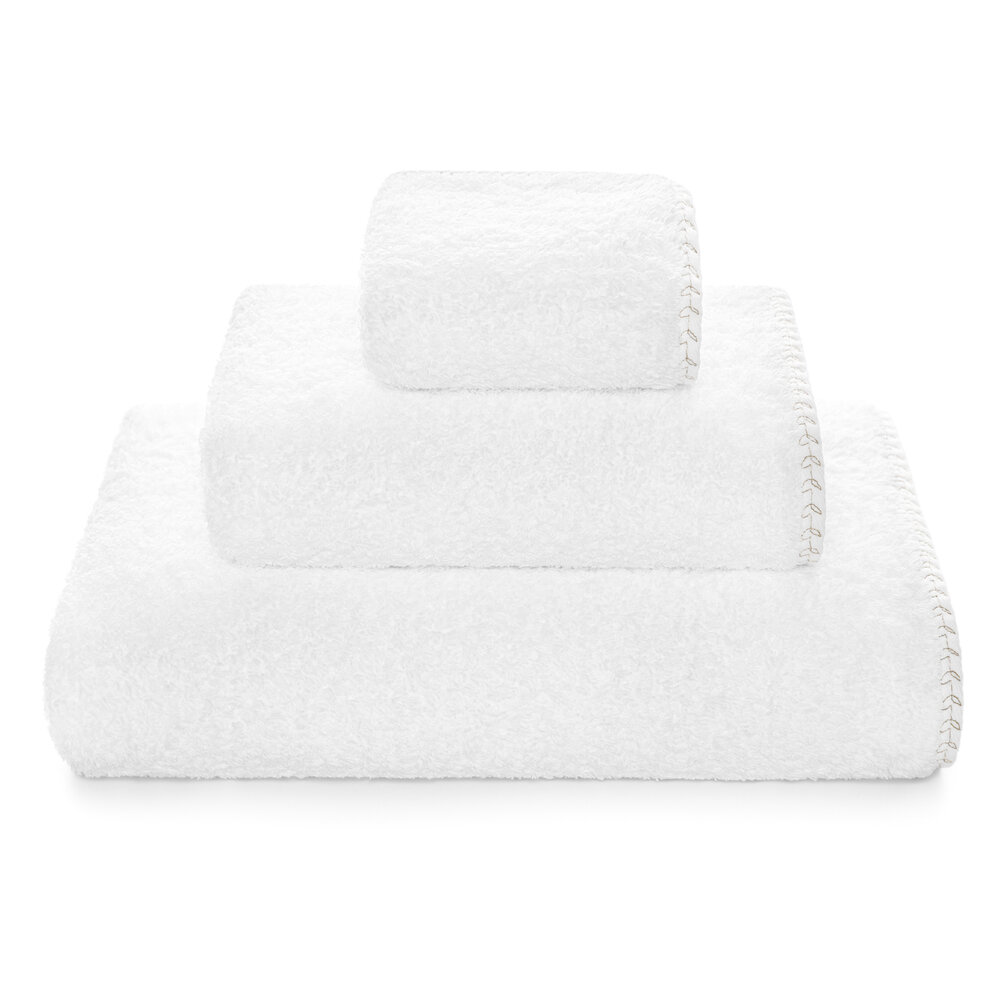Featuring a subtle blanket stitch design, the Fiona towel exudes understated elegance with a contemporary twist. Soft and highly absorbent, it is the perfect addition to any bathroom.