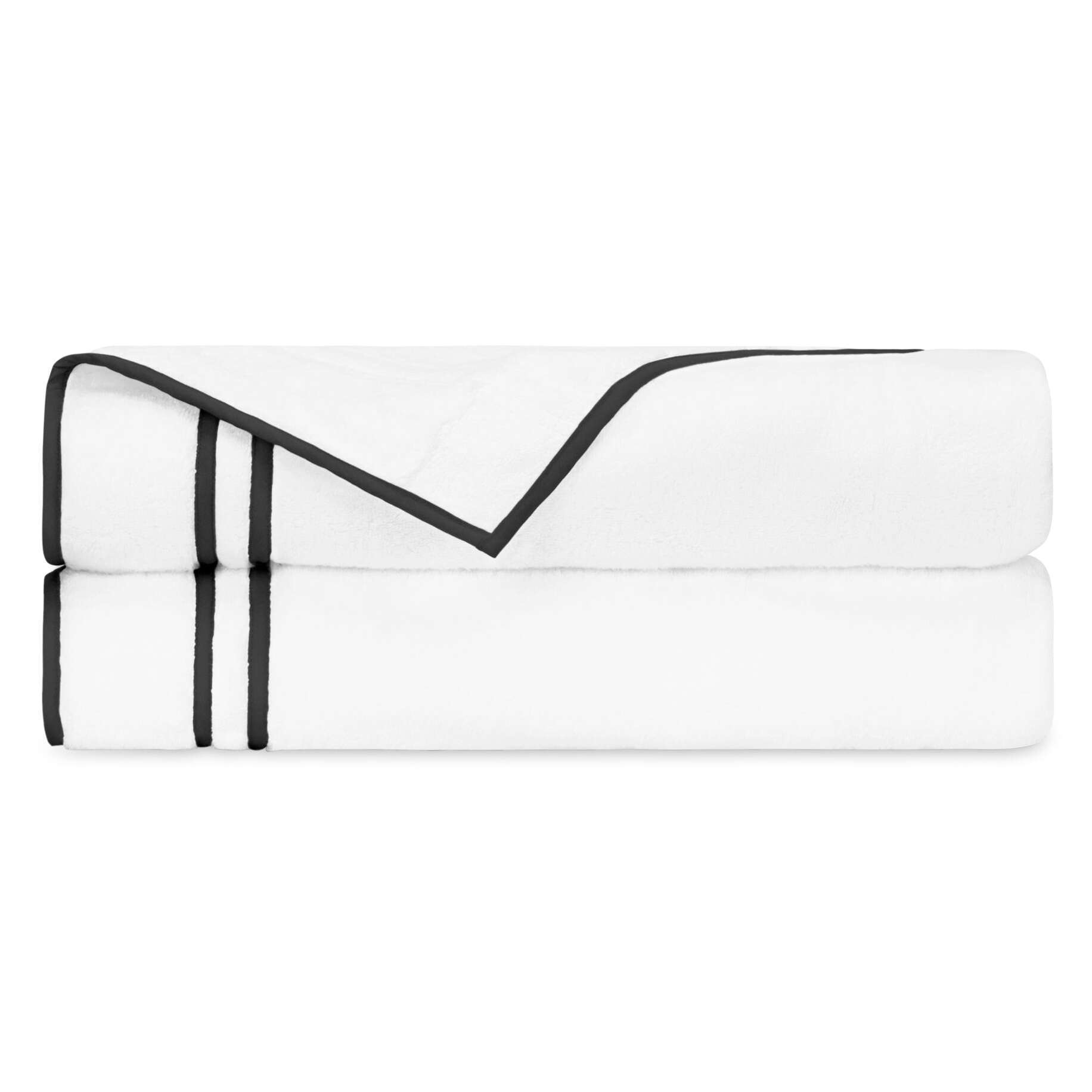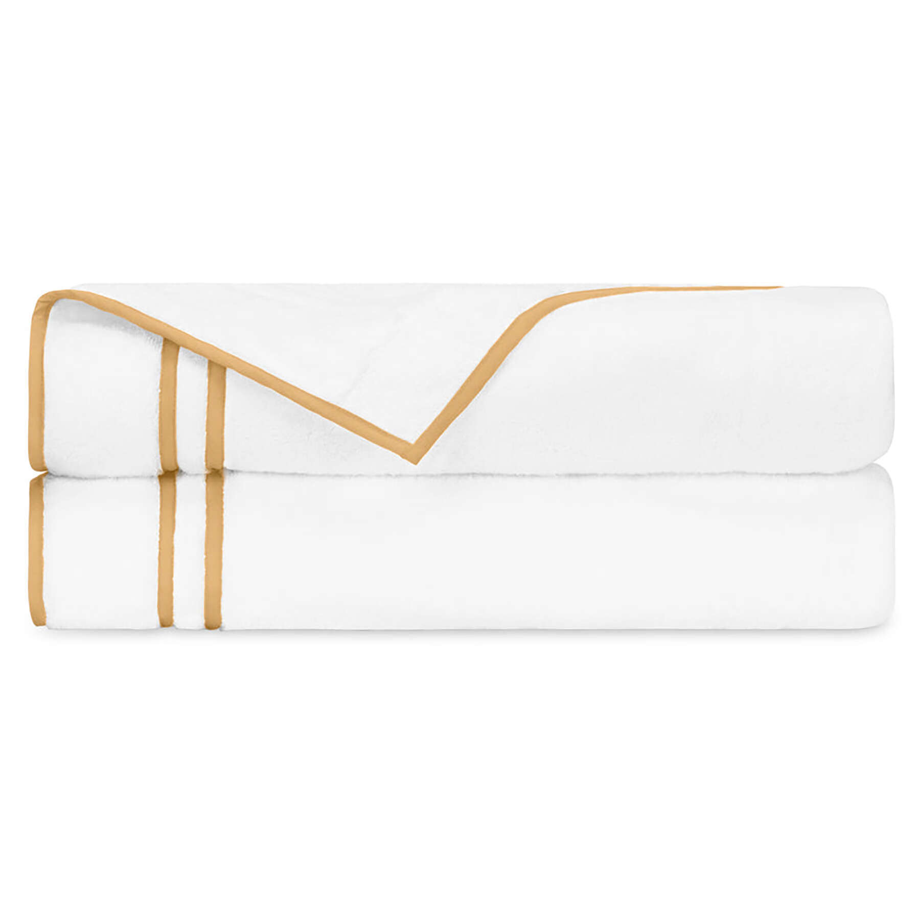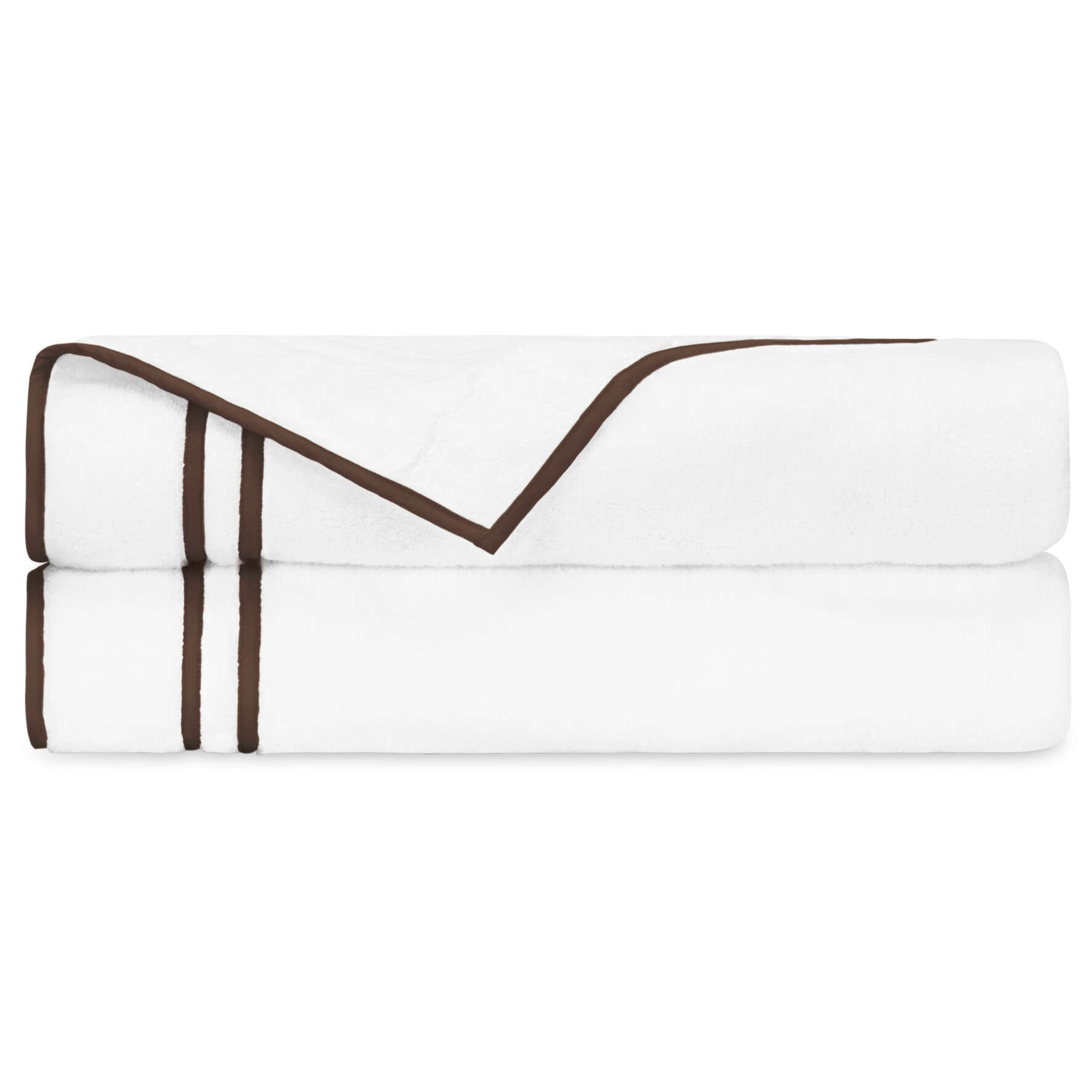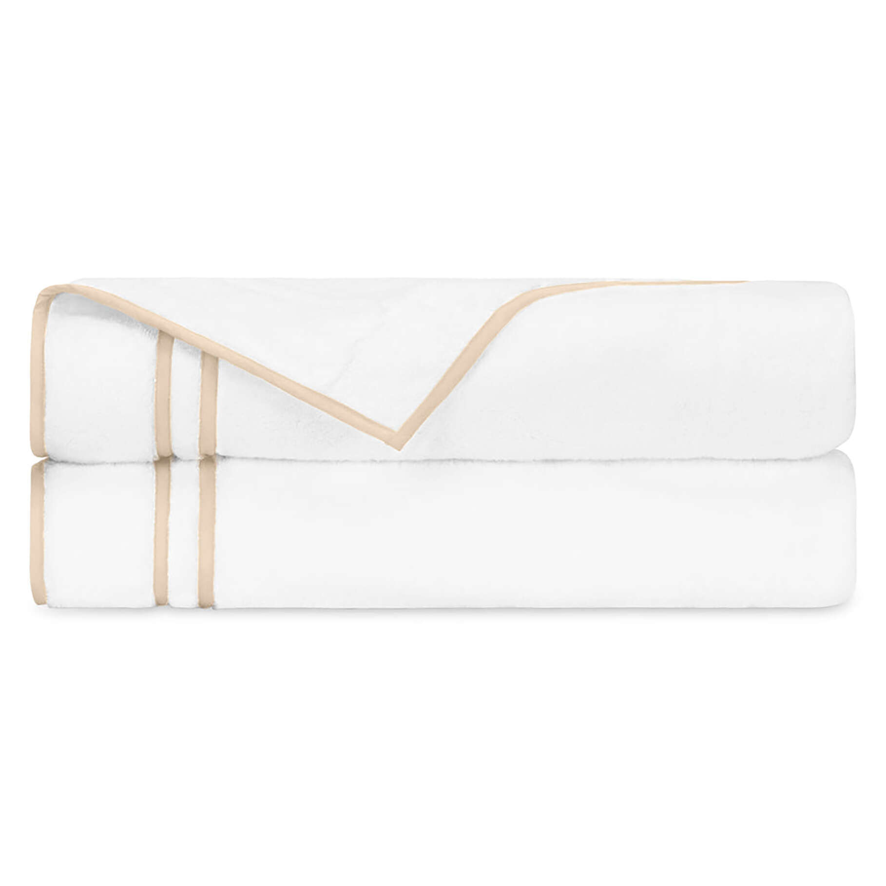 Two sateen ribbons and a coordinating straight-edge piping give our sumptuous zero-twist Turkish terry towel a handsome, tailored look.