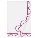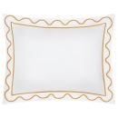The bound scallop "double-flange" and narrow colored inset on this Italian sateen, is tailored, yet playful.