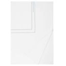 Flat Sheets, Pillowcases are designed with a solid sateen body and a triple-line embroidered satin stitch, in two tonal colors, along the cuff hem.
