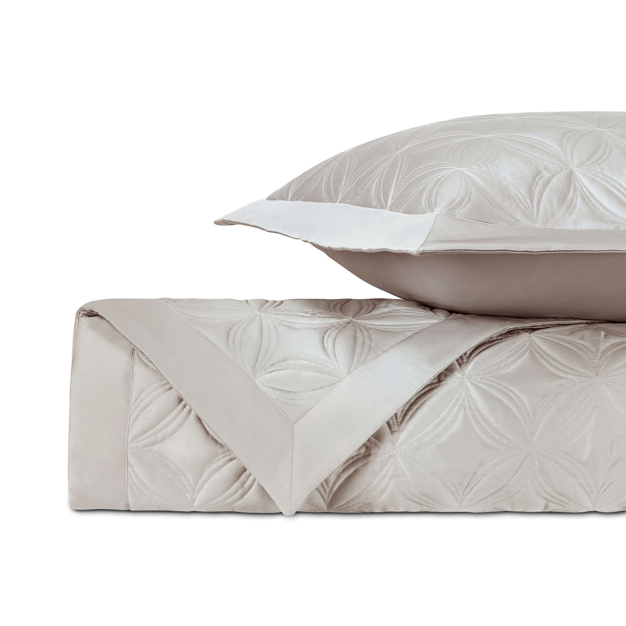 Our classic royal sateen quilted coverlets, in Dara pattern, are finished with a solid 2" border.