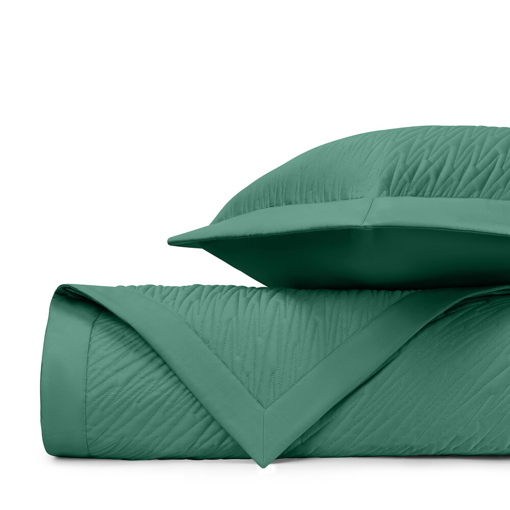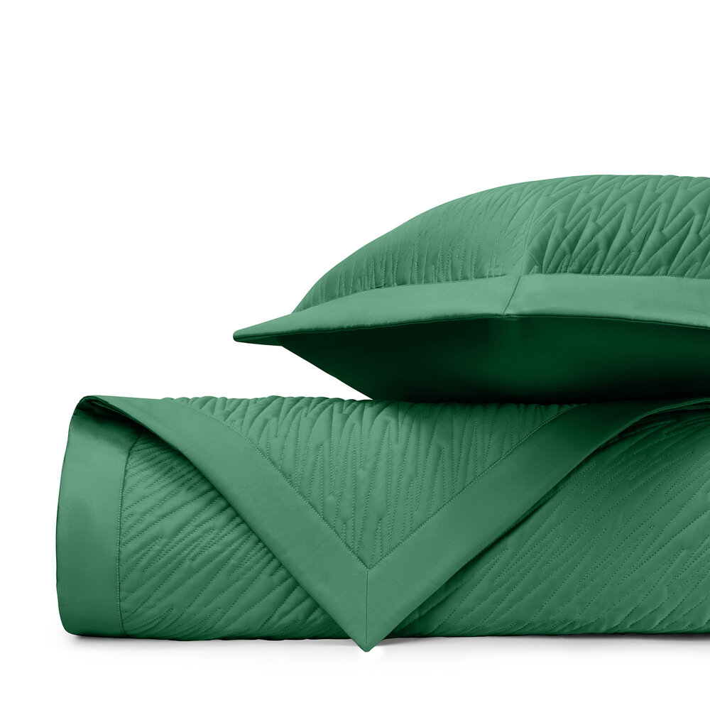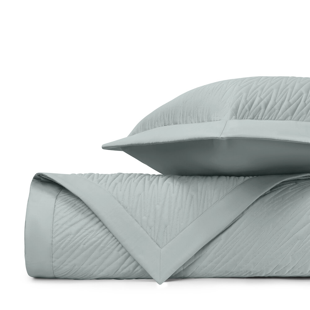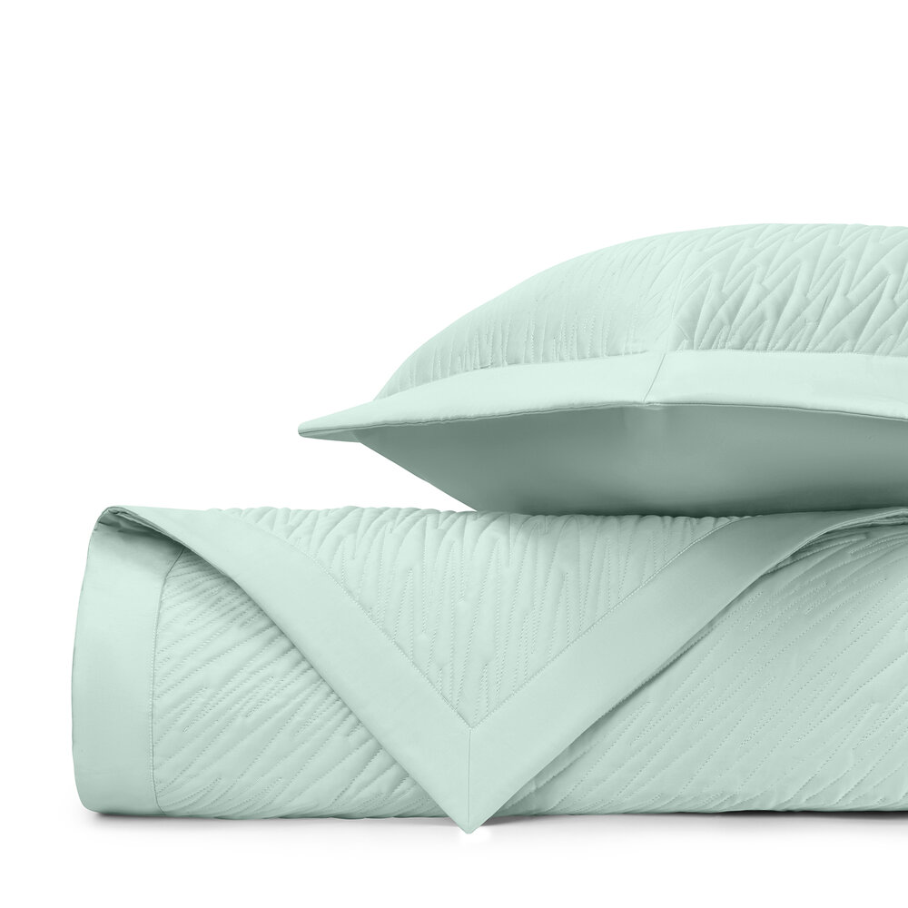 Coverlet: Our classic royal sateen quilted coverlets, in Blaze pattern, are finished with a solid 2" border.