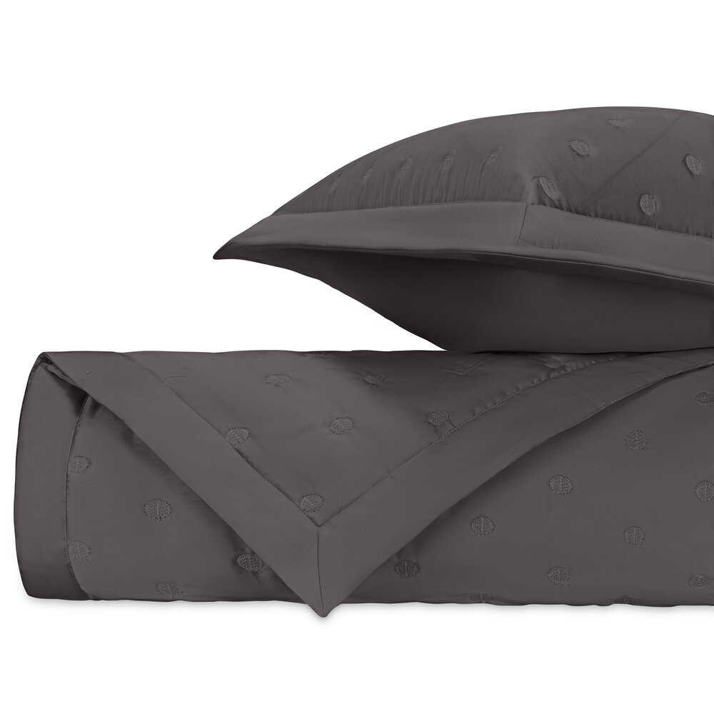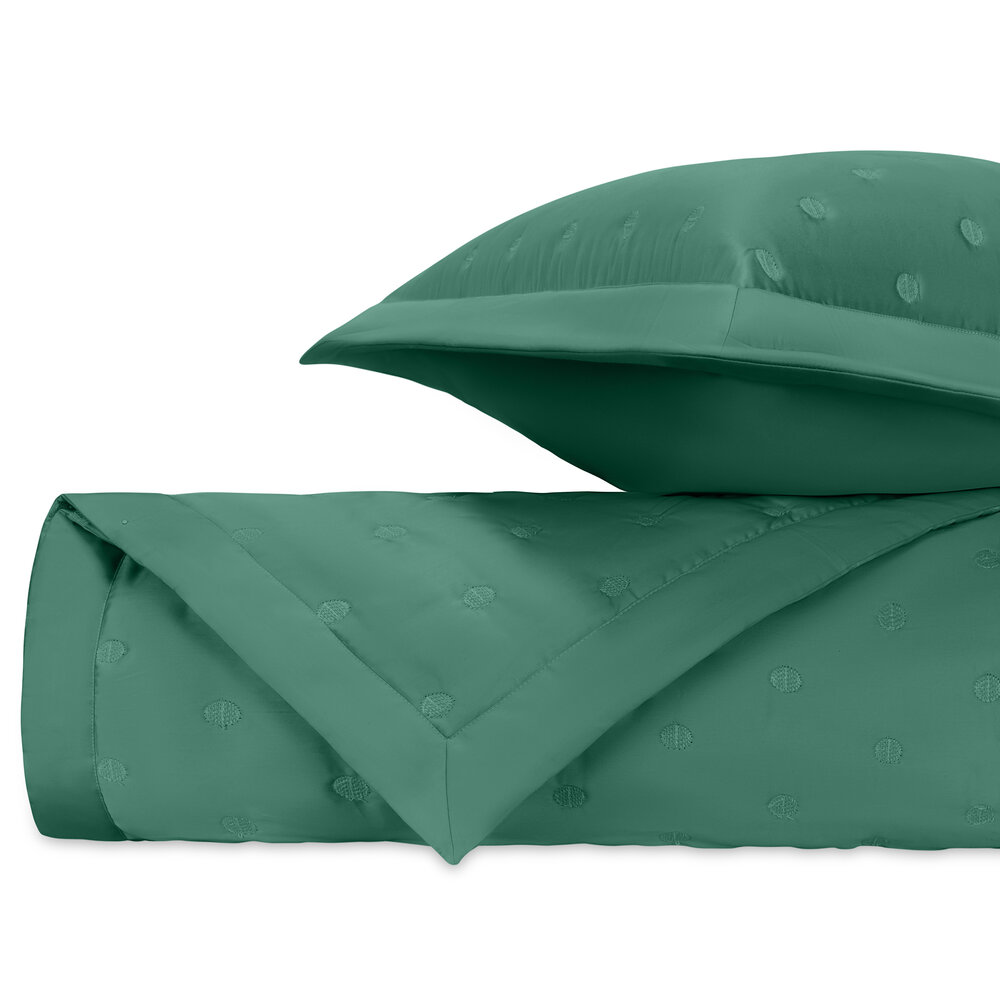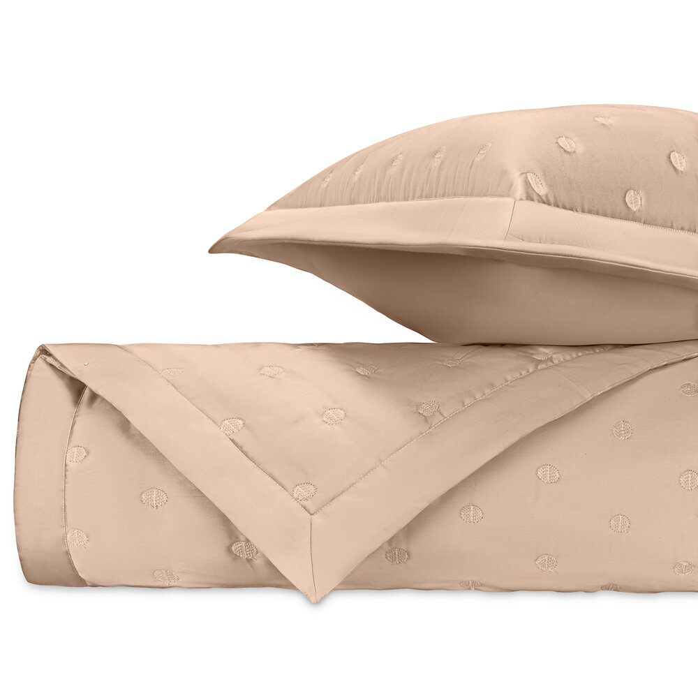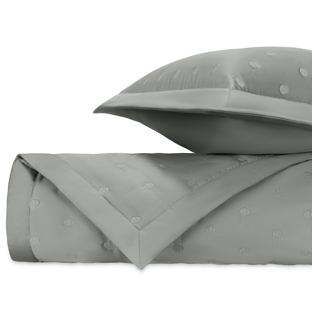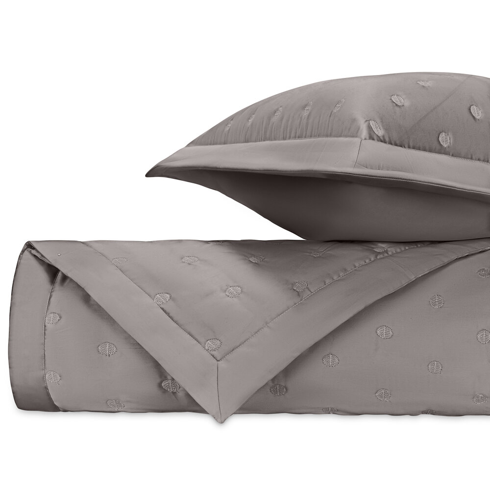 Our Royal Sateen coverlets, quilted in Cerchio pattern, are finished with a 2" solid border.