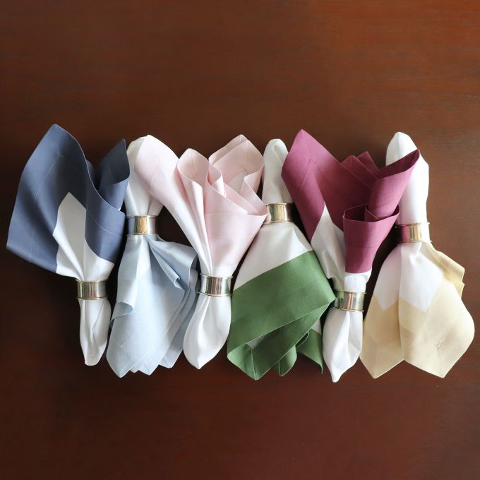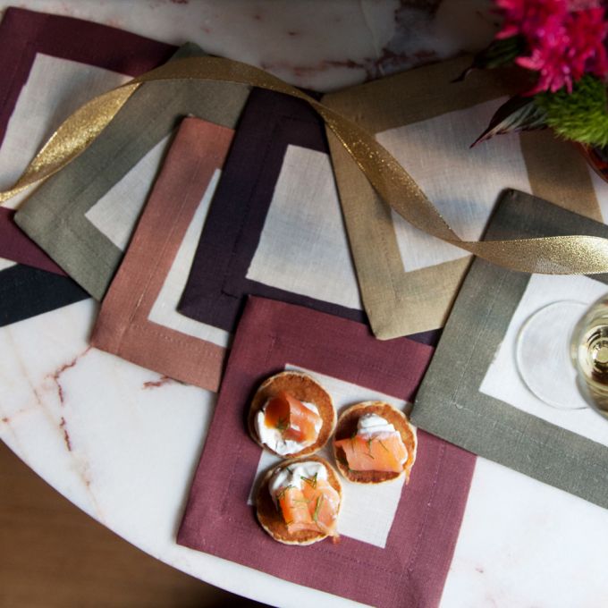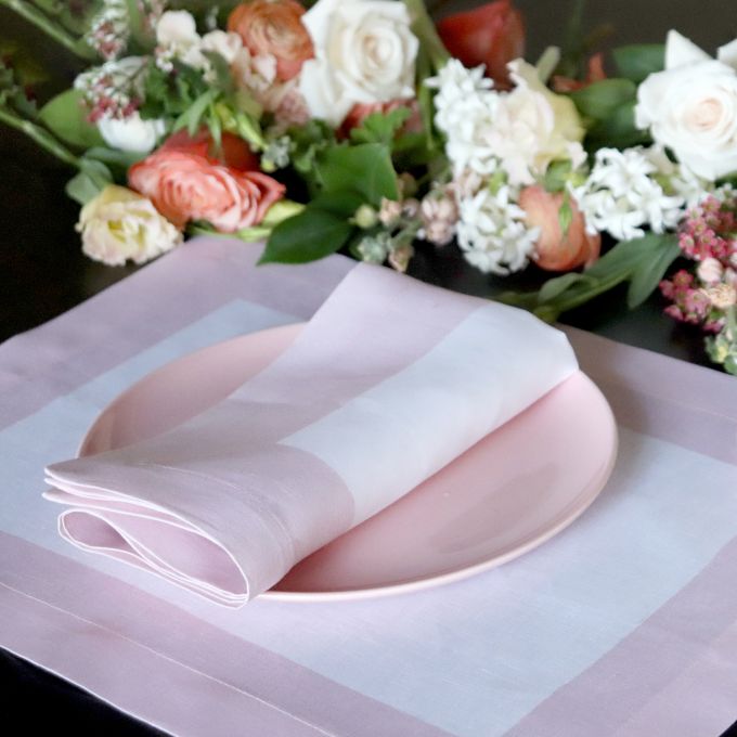 White linen napkin and placemat featuring a painted border in a beautiful.