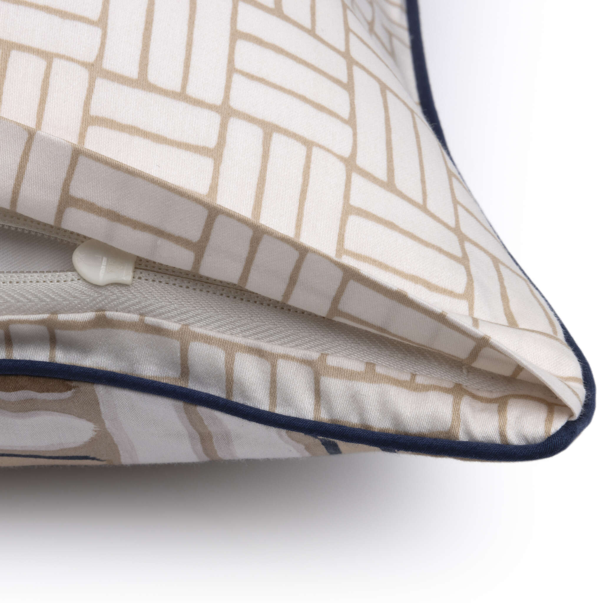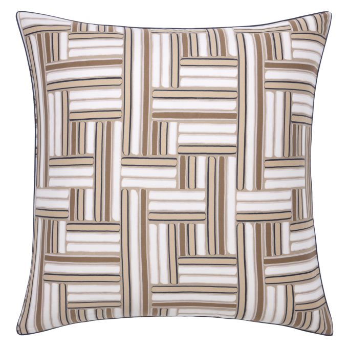 Sham with all-over pattern, piped edging and zipper closure.