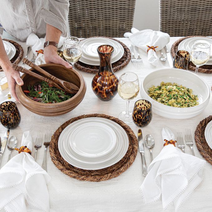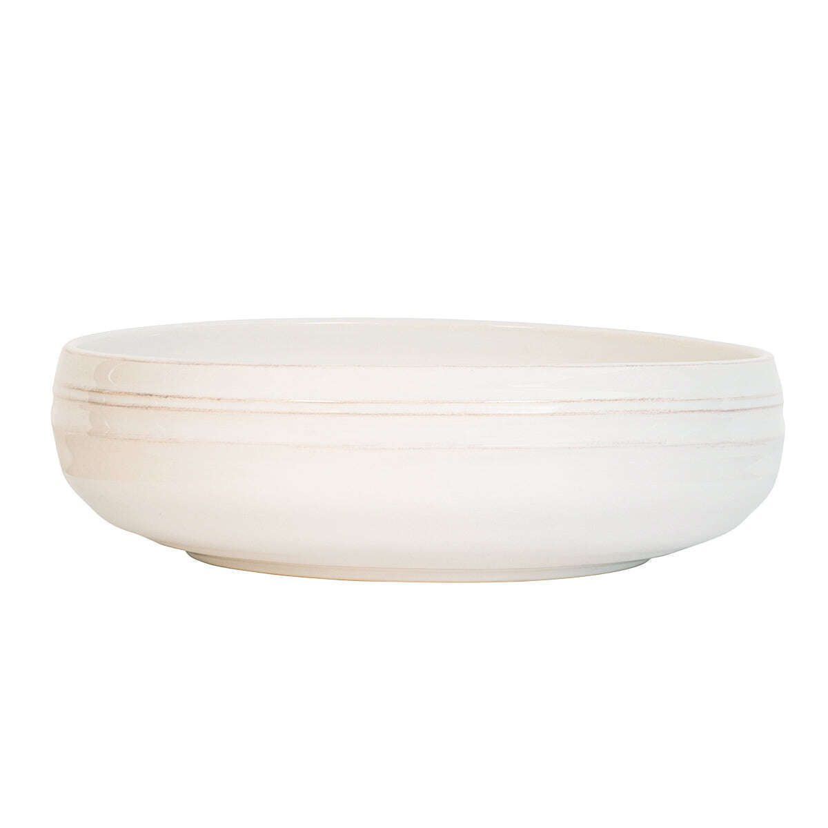 From our Bilbao Collection - Old-world patina meets modern silhouette with this large serving bowl that is the perfect vessel for serving up summer's fresh bounty of seafood, a hand-torn salad, or a handsome smattering of roasted potatoes. We also adore it as a mainstay fruit bowl on the countertop, or accent piece filled with found treasures from the seashore or forest floor.