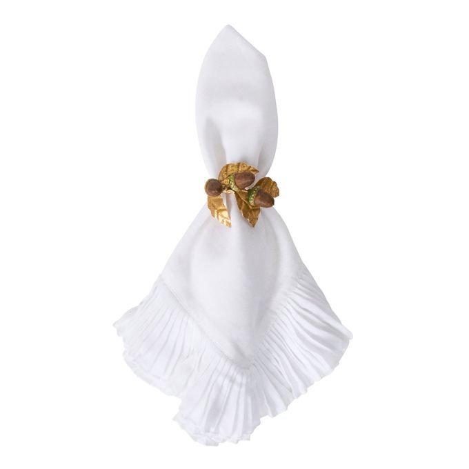 Bring the timeless elegance of a forest to your table settings with this set of beautifully handcrafted, sculptural napkin rings that are festooned with golden oak leaves and clusters of acorns. Gift boxed.