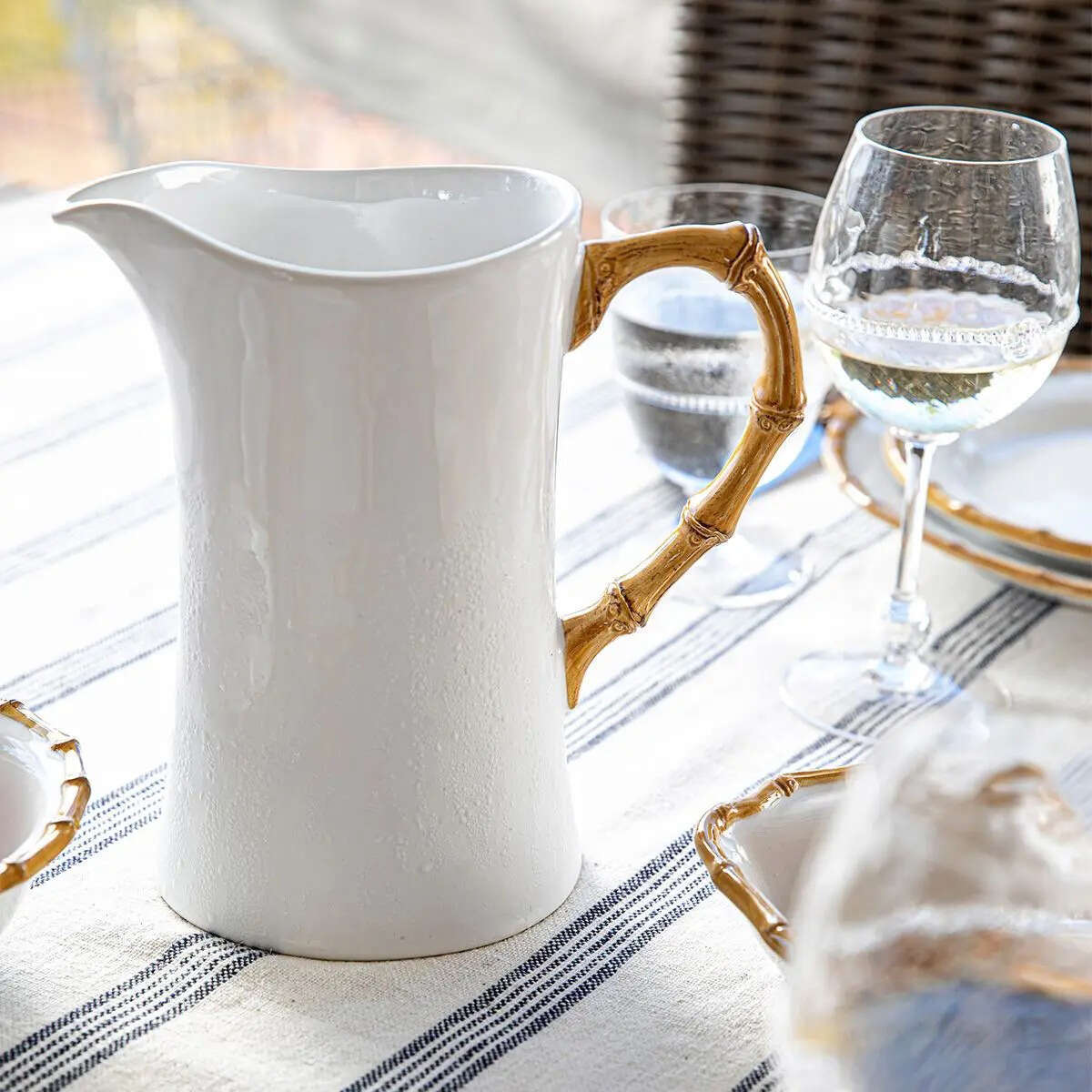 The combination of sunny bamboo and the gleaming white of this ample pitcher is a match made in paradise. Serve up a fun party drink on a Friday or fresh-squeezed lemonade for book club-it also moonlights as a chic vase, filled with armfuls of flowers.