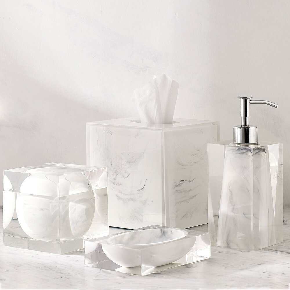 Adorn your spa with our Ducale bath accessories. Crafted with ink-injected resin that floats seamlessly in a translucent acrylic encasing, these accessories complete a bathroom that radiates with textural and modern appeal.