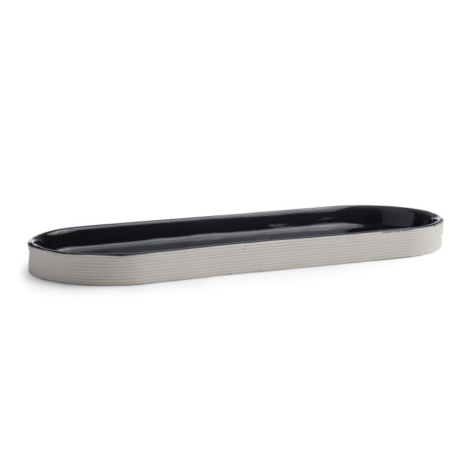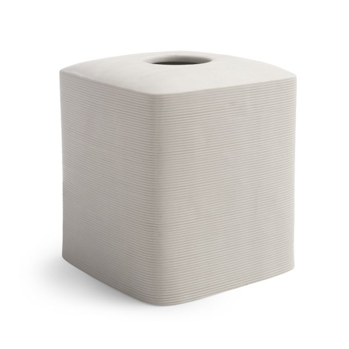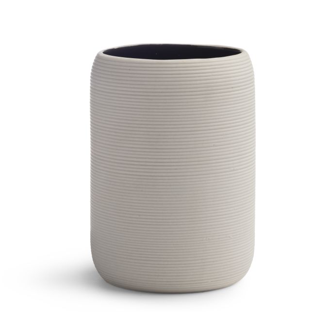 Crafted from porcelain, the Fillmore Bath Accessories feature a ribbed texture. Ivory on the outside and black on the inside, these accessories achieve the ultimate modern look.