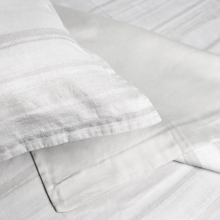 Our Mirage design is a unique masterpiece featuring naturalistic stripes reminiscent of a painter's brush strokes. Elevated by the lustrous sheen of OEKO-TEX-certified BCI cotton, the duvet is a perfect blend of organic beauty and refined opulence. With its solid back, it offers a seamless touch of sophistication to any bedroom.