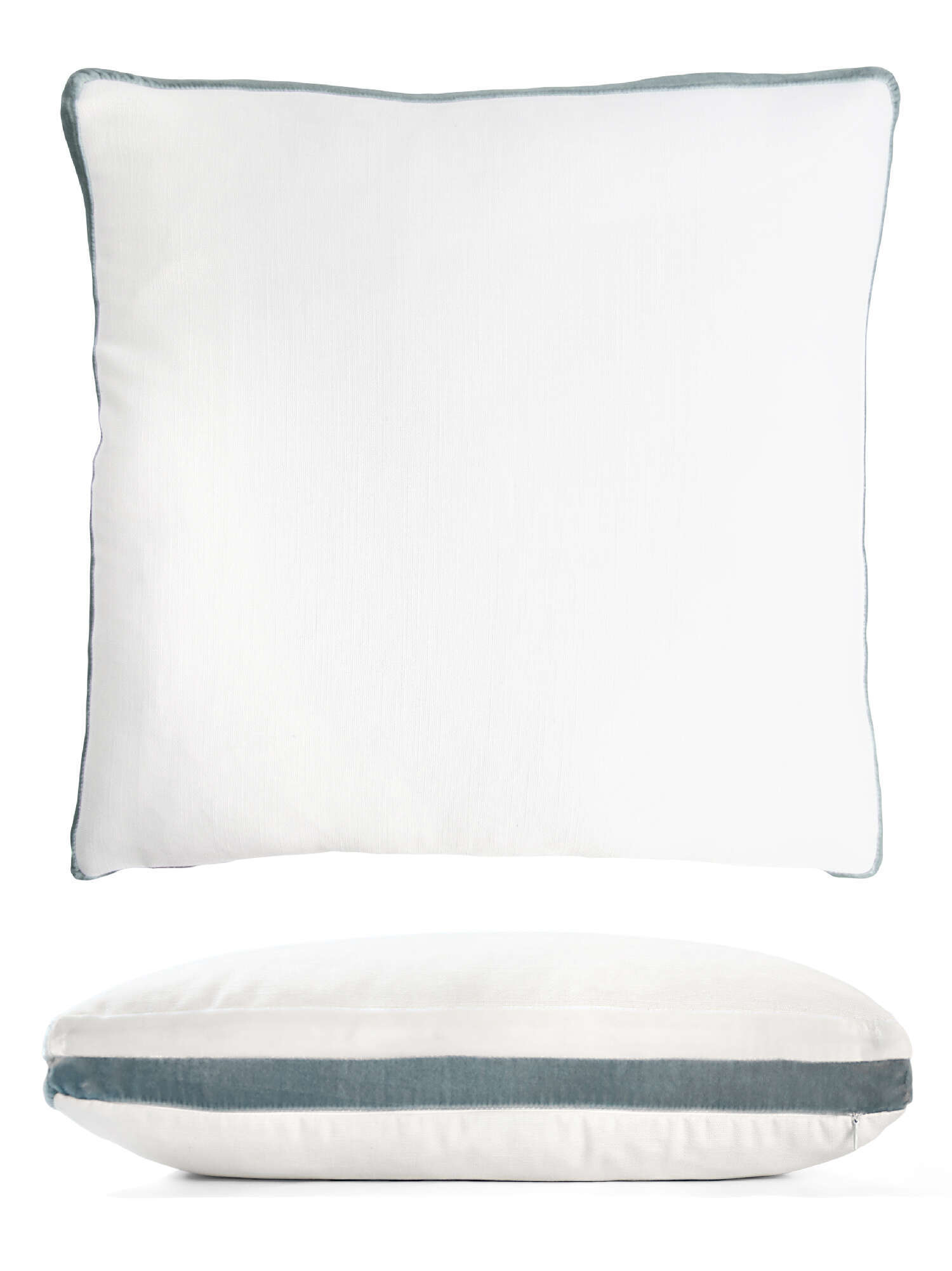 This chic linen/cotton pillow is brightened by two silk velvet tuxedo stripes that coordinate beautifully with our luxe velvet pillows.