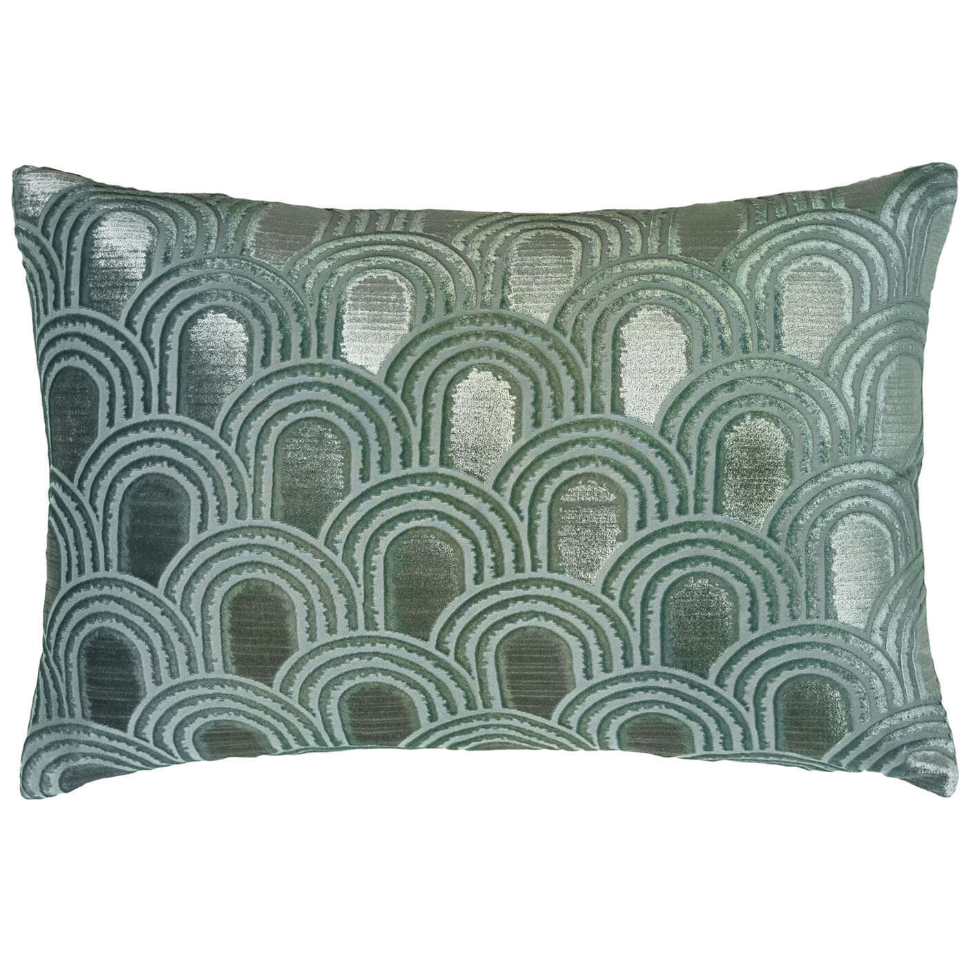 Our Endless burnout velvet pattern features glitzy Art Deco arches with some unexpected textural twists. This design began in Kevin’s sketchbook, was printed on silk velvet, then hand-painted in small batches by artisans in Philadelphia. Dye is applied by hand in layers on the velvet fiber surface. Variations in color are part of the nature of our unique dying process. Zip closure; comes with a feather/down insert.