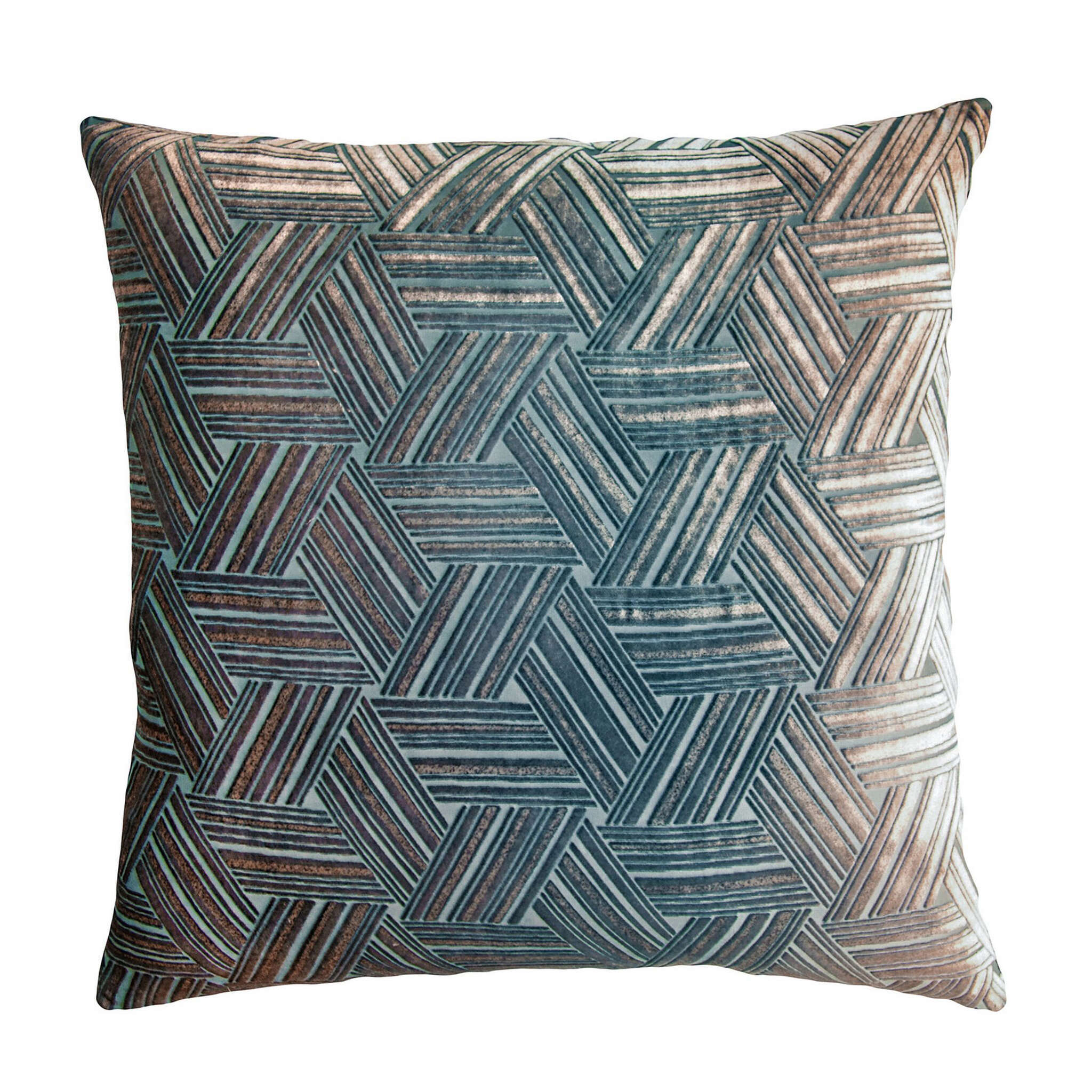 Entwined is our original pattern made of high and low lines of velvet and silk. This design began in Kevin’s sketchbook, was printed on silk velvet, then hand-painted in small batches by artisans in Philadelphia. Dye is applied by hand in layers on the velvet fiber surface. Variations in color are part of the nature of our unique dying process. Zip closure; comes with a feather/down insert.
