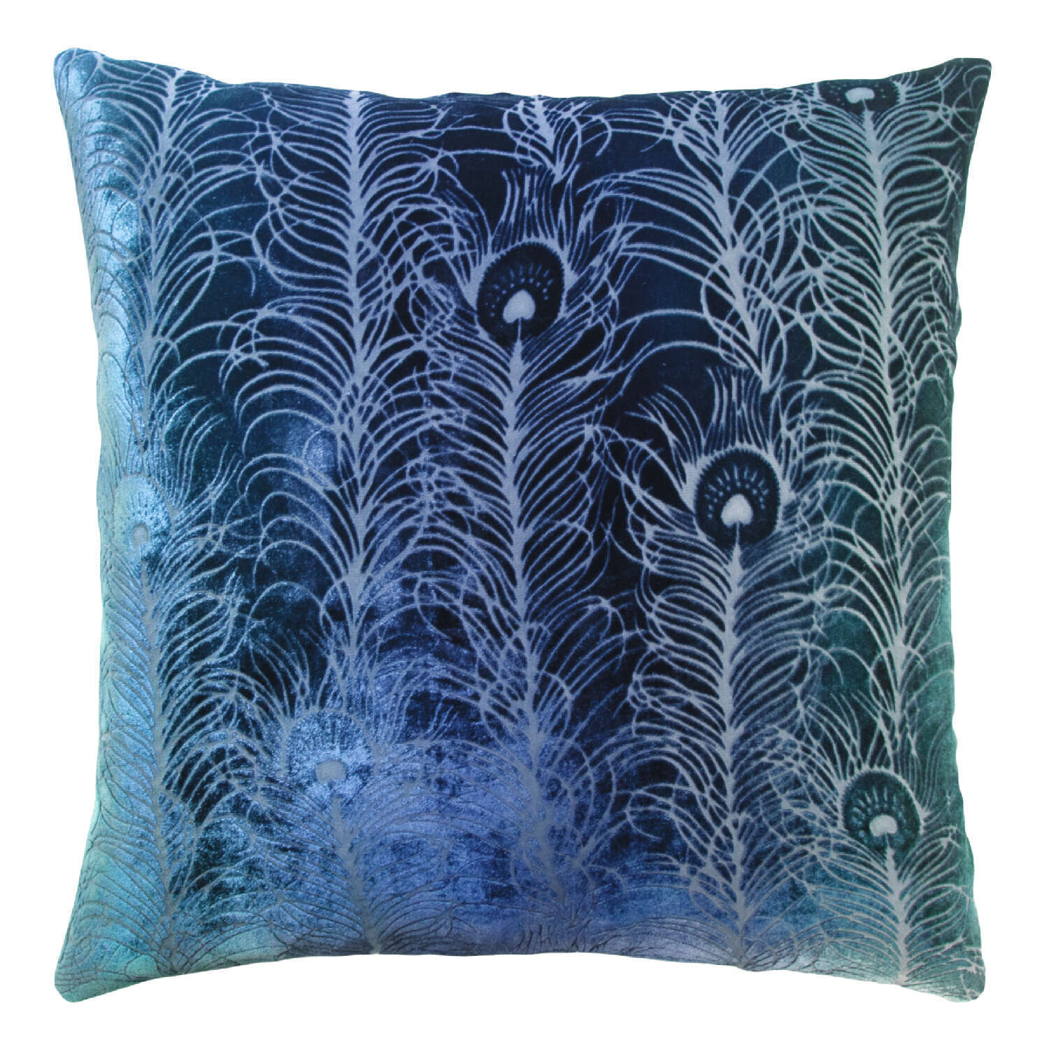 Our Peacock Feather design is inspired by the opulence of nature. This design began in Kevin’s sketchbook, was printed on silk velvet, then hand-painted in small batches by artisans in Philadelphia. Dye is applied by hand in layers on the velvet fiber surface. Variations in color are part of the nature of our unique dying process. Zip closure; comes with a feather/down insert.