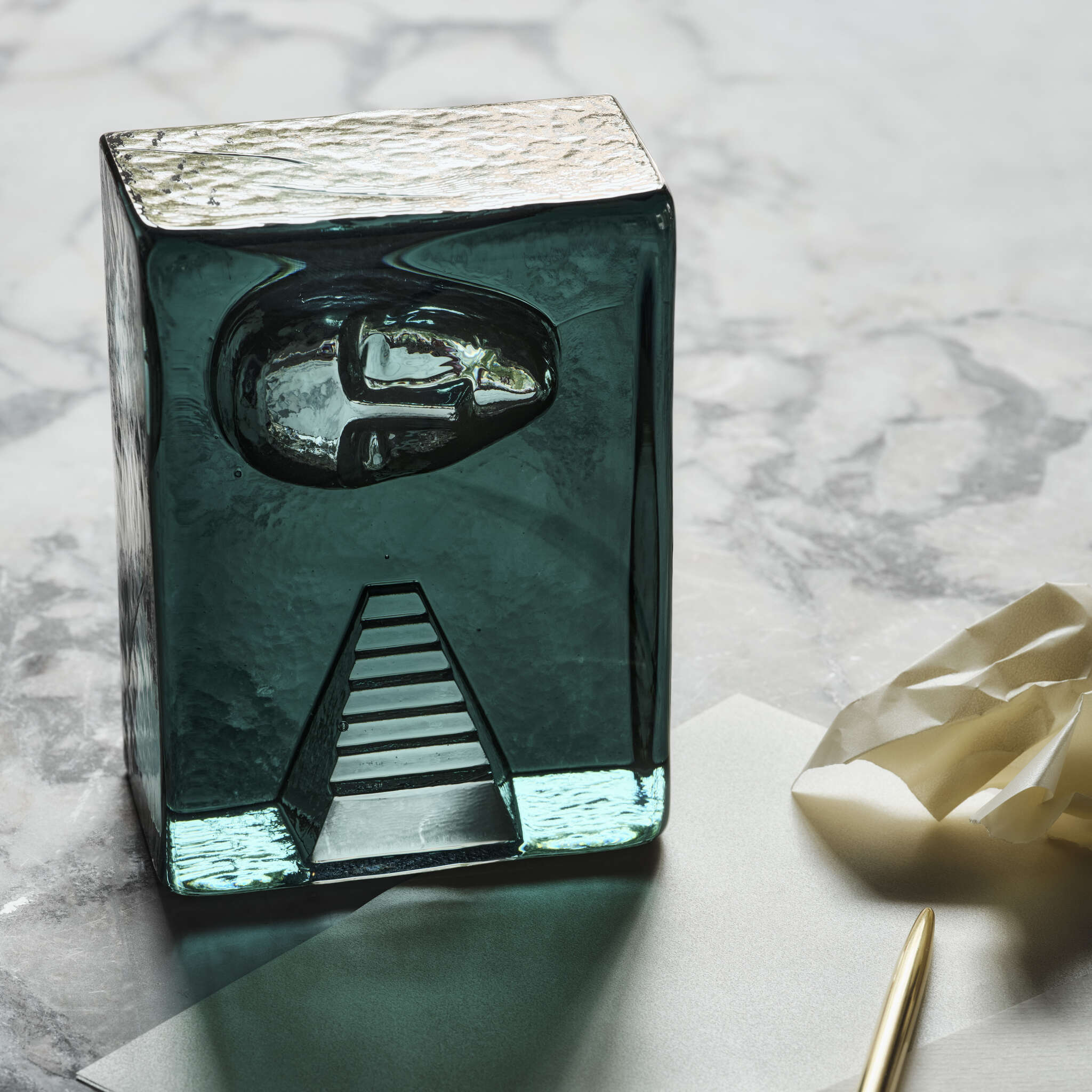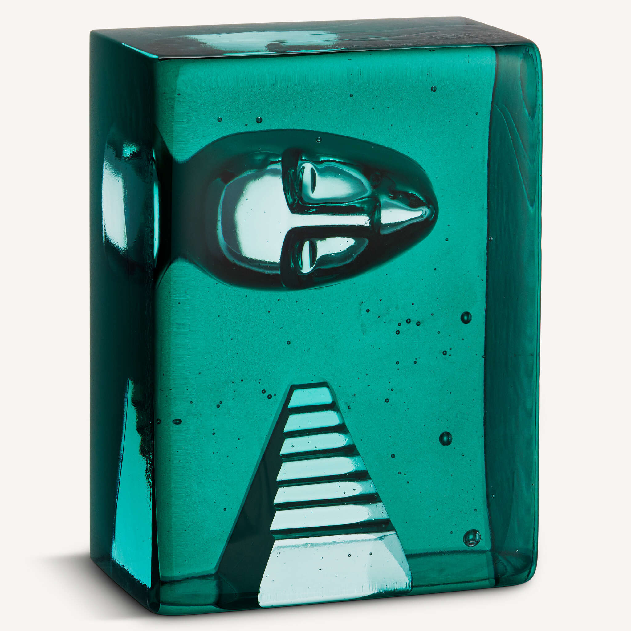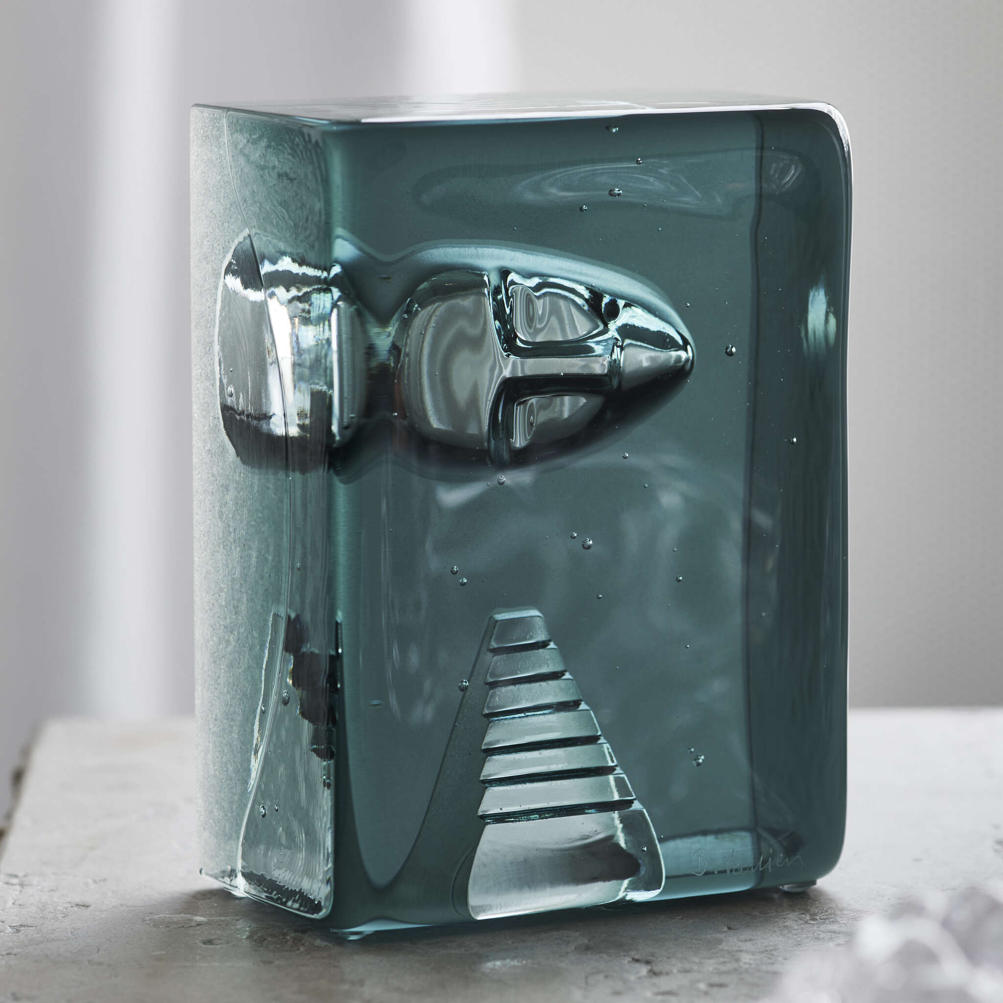 The renowned Swedish glass artist Bertil Vallien has created Azur Stairs. It is an exclusive art object in glass, cast in a charcoal mold, with an imprint of a face above a staircase. Both motifs are recurring in his work, often as details in his magnificent boats of glass. The object is handmade at Kosta Glassworks in Sweden and is part of the Kosta Boda Artist Collection.