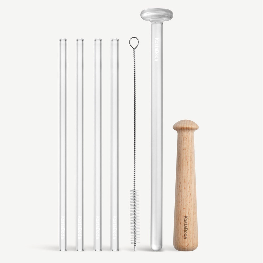 Viva by Kosta Boda is a versatile collection of glasses for cold beverages including a wide assortment of drink accessories perfect for any social occasion. The cocktail box, which contains a stirrer, 4 pcs glass straws with a cleaning brush and a muddler, is perfect for almost any long drink. Designed by Matti Klenell.