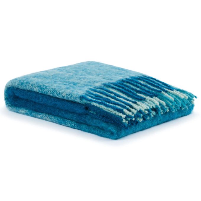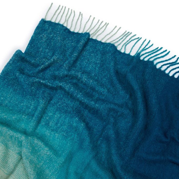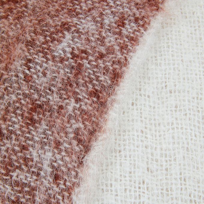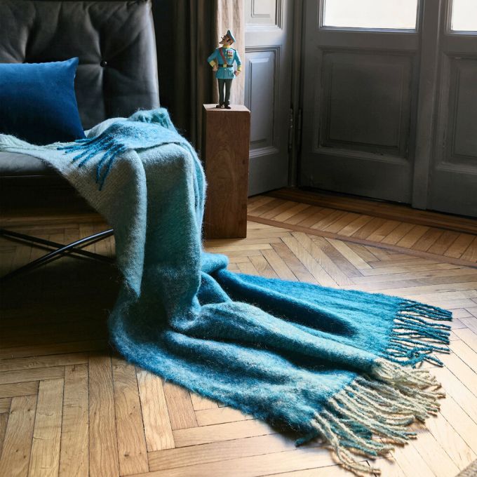 Delicate shades, impalpable material. Degradé Check is a jacquard-woven mohair throw that plays with the chromatic fading of tartan to create a fluid, modern optical effect. The softness of the yarn and its natural sheen enhance the light, enveloping texture, while the fringes complete the aesthetic with a subtle decorative detail. Perfect for those seeking a graphic touch with a sophisticated character, able to warm both the space and the eye.