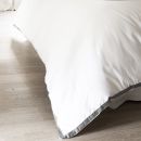 Duvet cover: 0,79" edge-to-edge satin ribbon, bag shape, invisible mother-of-pearl-effect button closure, inner ties at 4 corners.