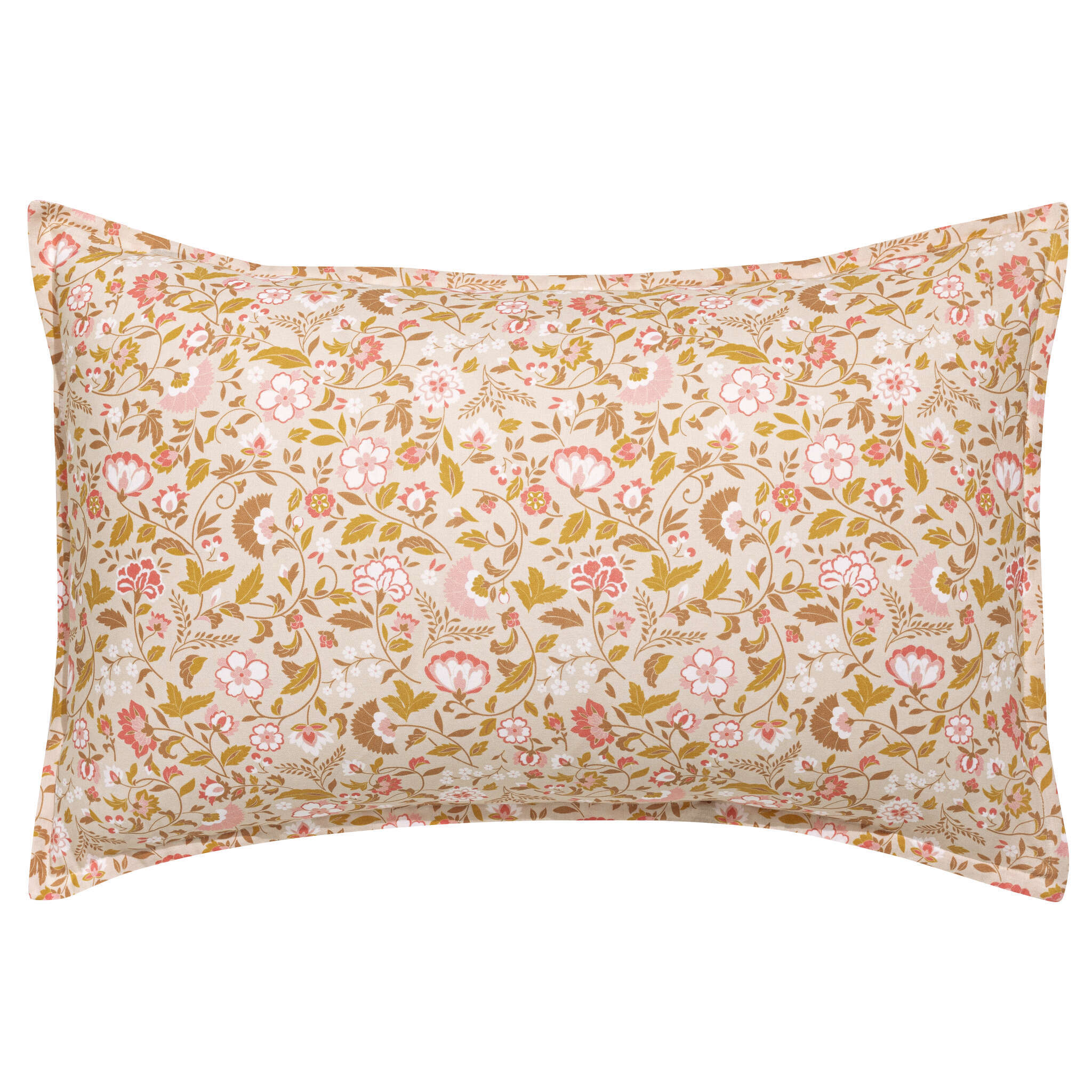 With Indian influences revisited and inspired by the cotton fabrics of Provence, this ornamental design enchants the home with its soft, multicolored palette. Certainly delicate and reassuring, on the front you'll find the stripe from the Nuances collection for a perfect mix and match. This story is also available as table linen.
