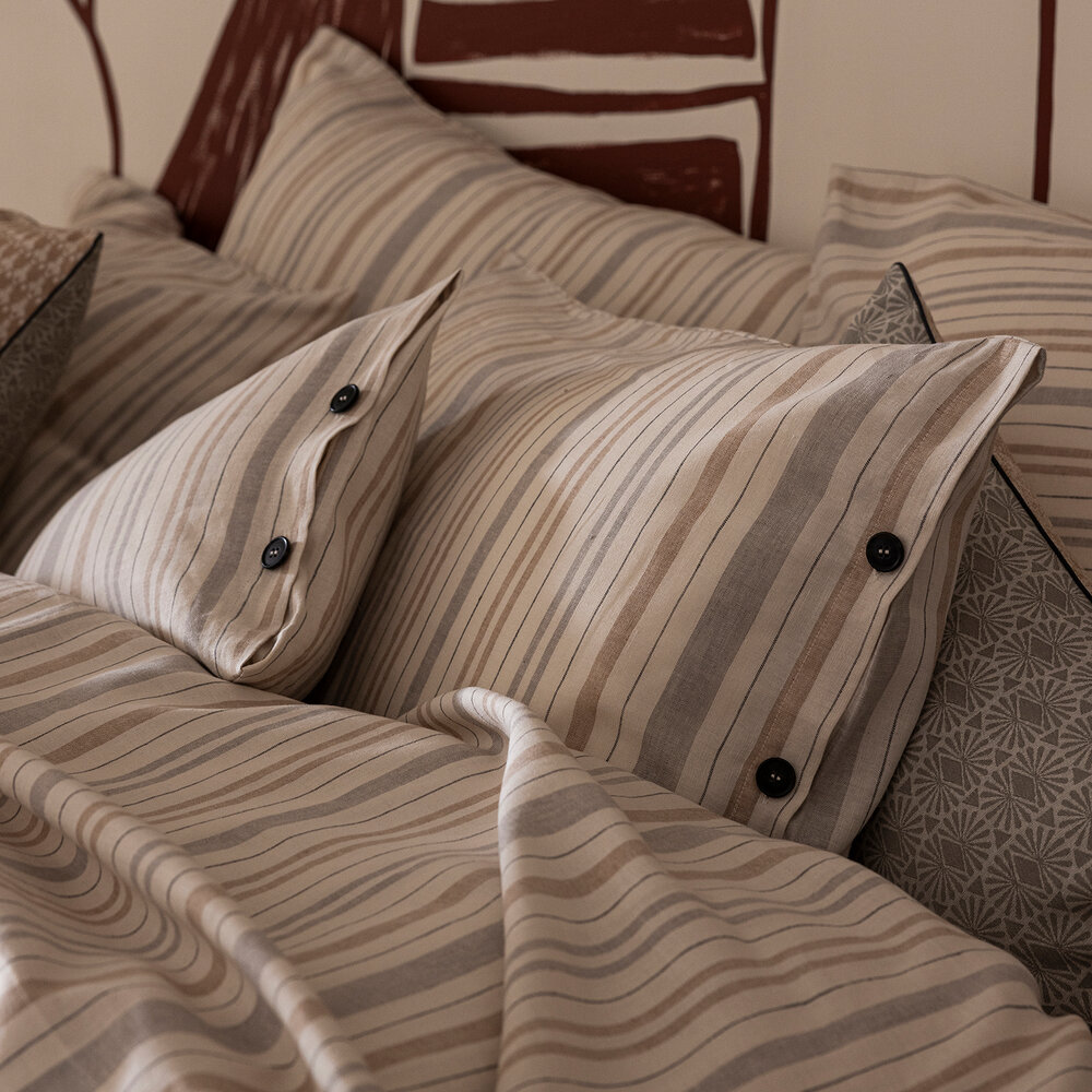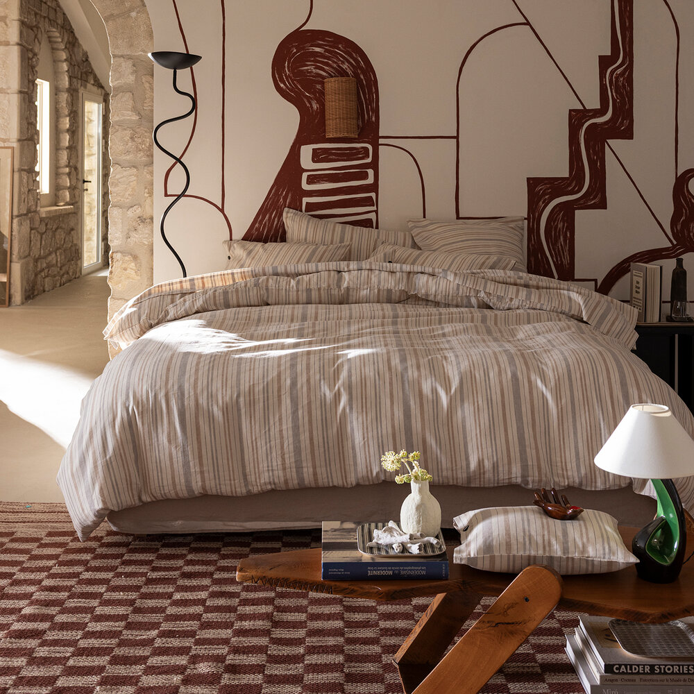 Under the southern sun, warmth wraps the tadelakt houses and reveals the simple beauty of a craft passed down through generations. Inspired by the tents of North African shepherds, the stripes of the Dune collection celebrate this ancestral heritage. Shades of sand and deep blue capture the light and the gentle movement of the dunes.