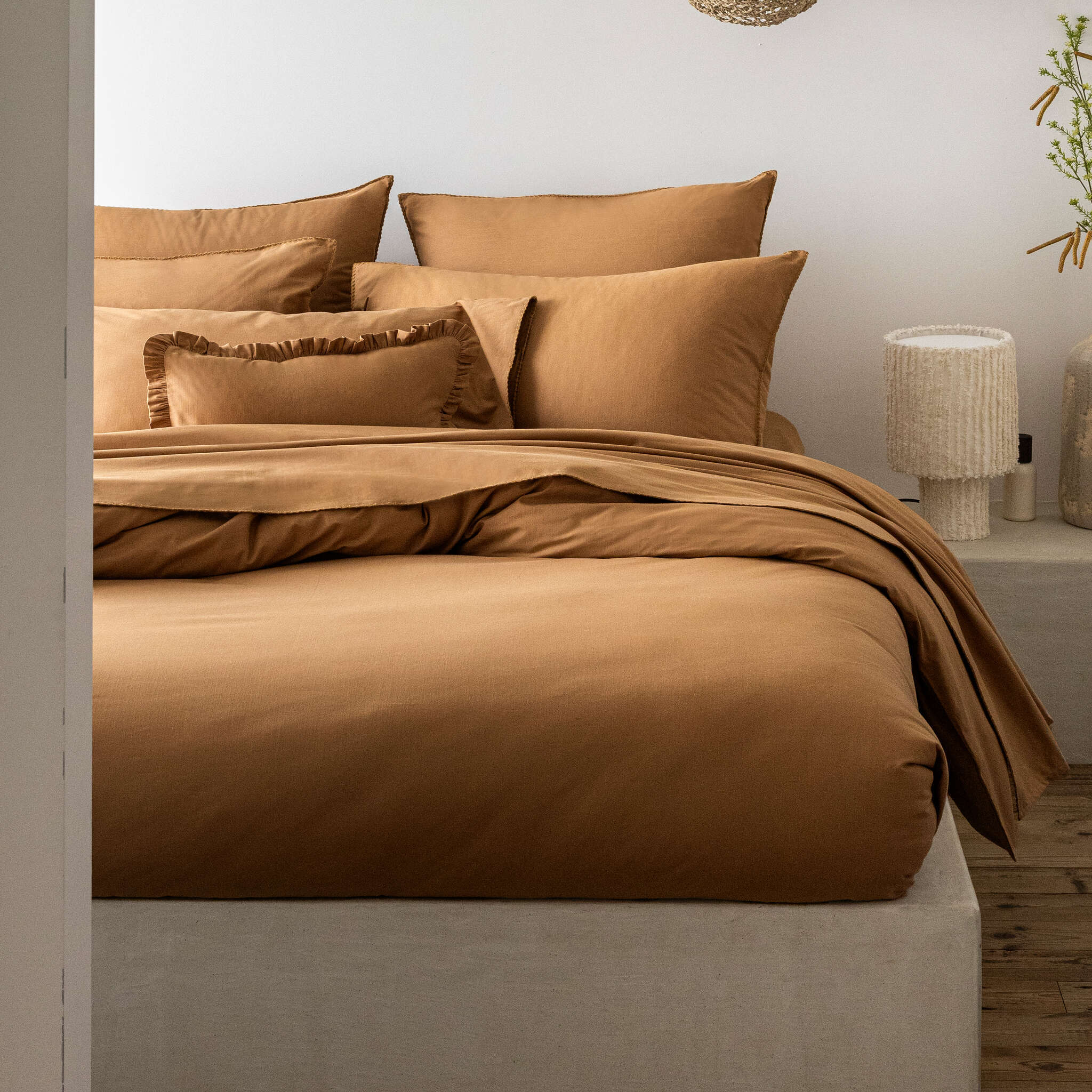This range of plain 100% cotton with a laid-back spirit stands out for its uniqueness. The slub yarn gives a rough and irregular look to the washed cotton. This collection brings a warm and authentic touch to your interior, combining comfort and elegance.