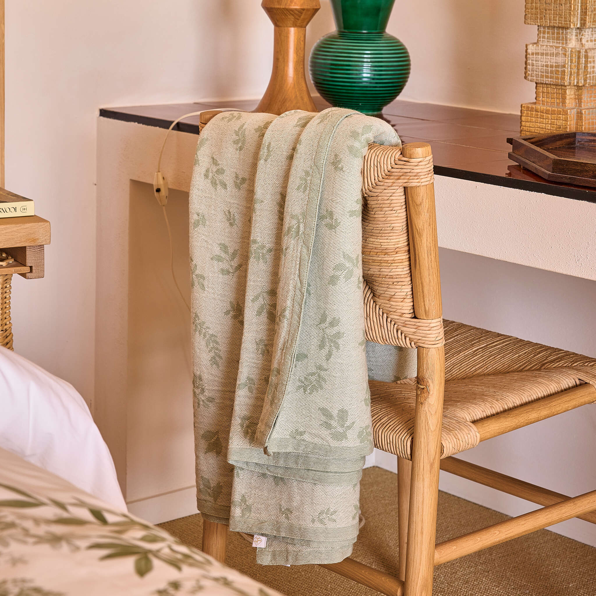 Like a gentle embrace of nature, this throw wraps every moment in serenity, as leaves dance delicately, creating a haven of warmth and comfort.