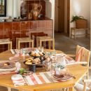 Succumb to the magic of a fairytale moment in the heart of an enchanted garden, where butterflies twirl gracefully, instilling a sense of tranquility. These coated tablecloths in polychrome stripes invite you to be daring.
