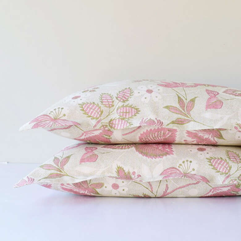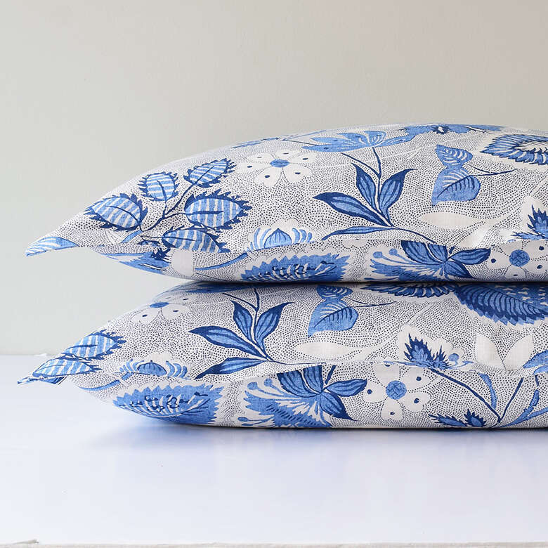 A modern floral inspired by classic Indienne prints, Indienne Hazel is available in four colors: Spa, Blush, Green and Blue.