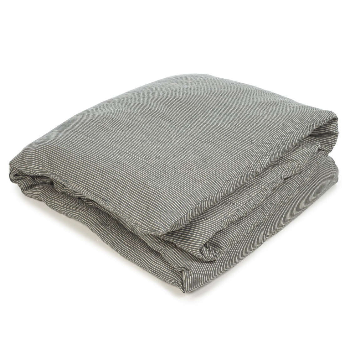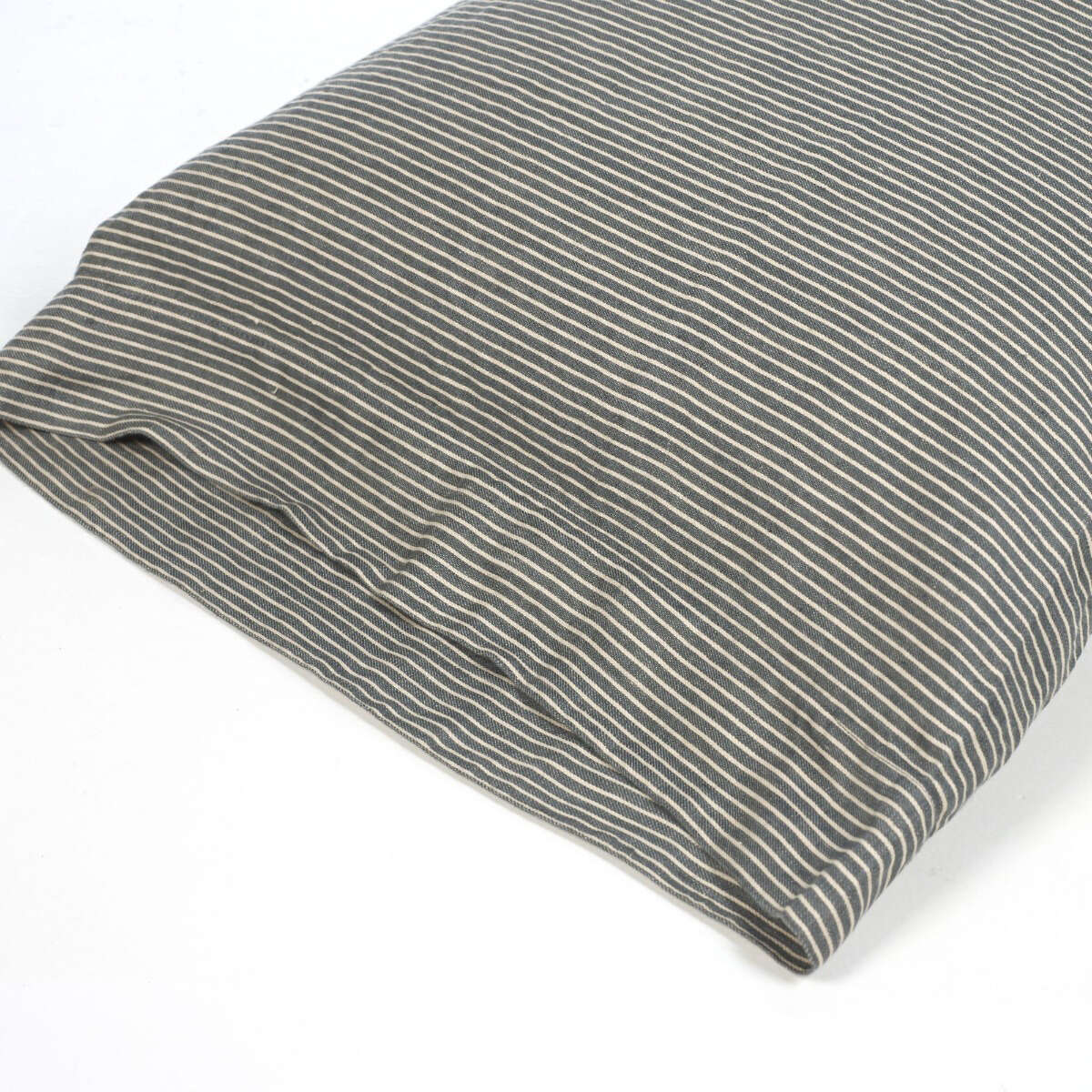 This is a twill weave, pure linen, all-over stripe in River and Ecru colors.