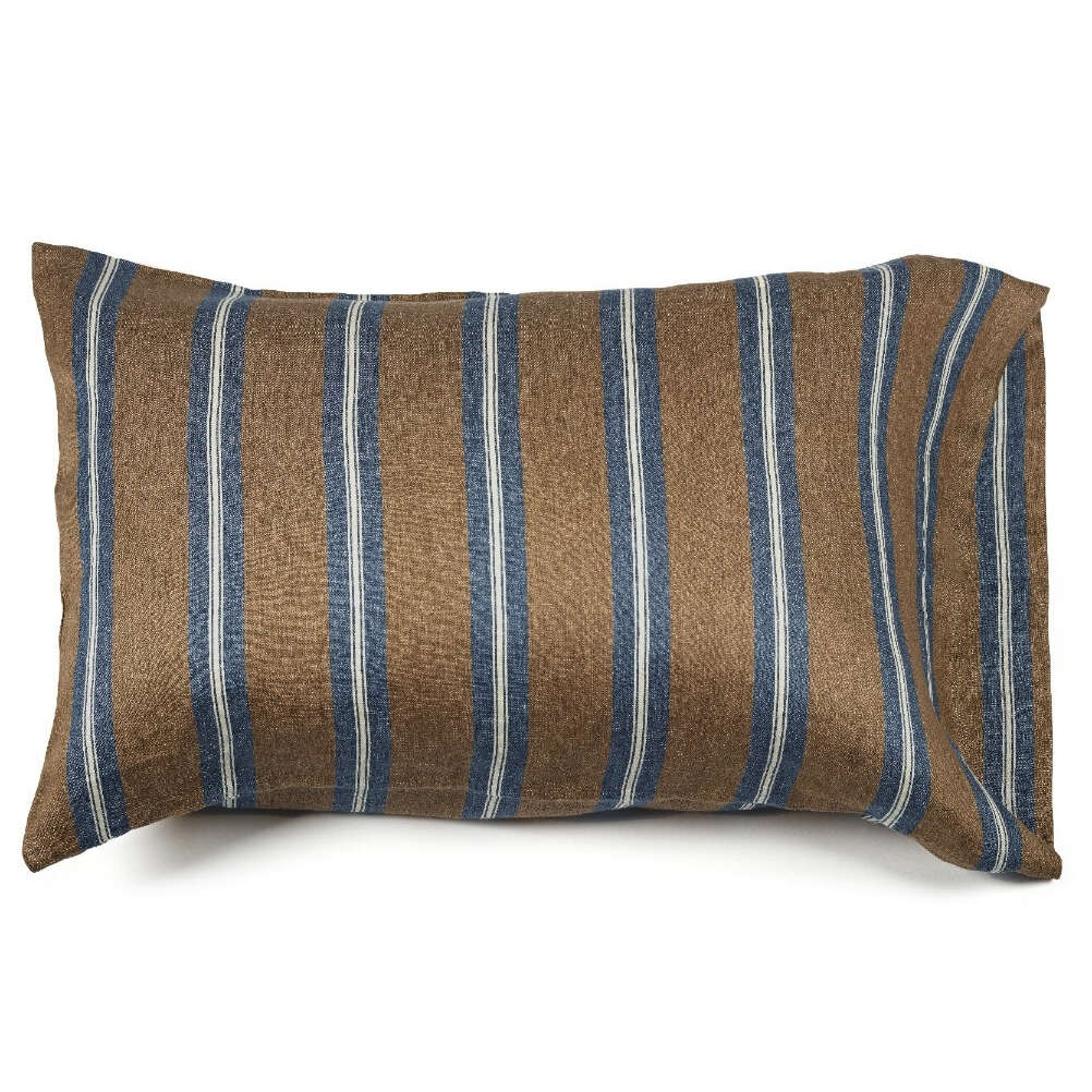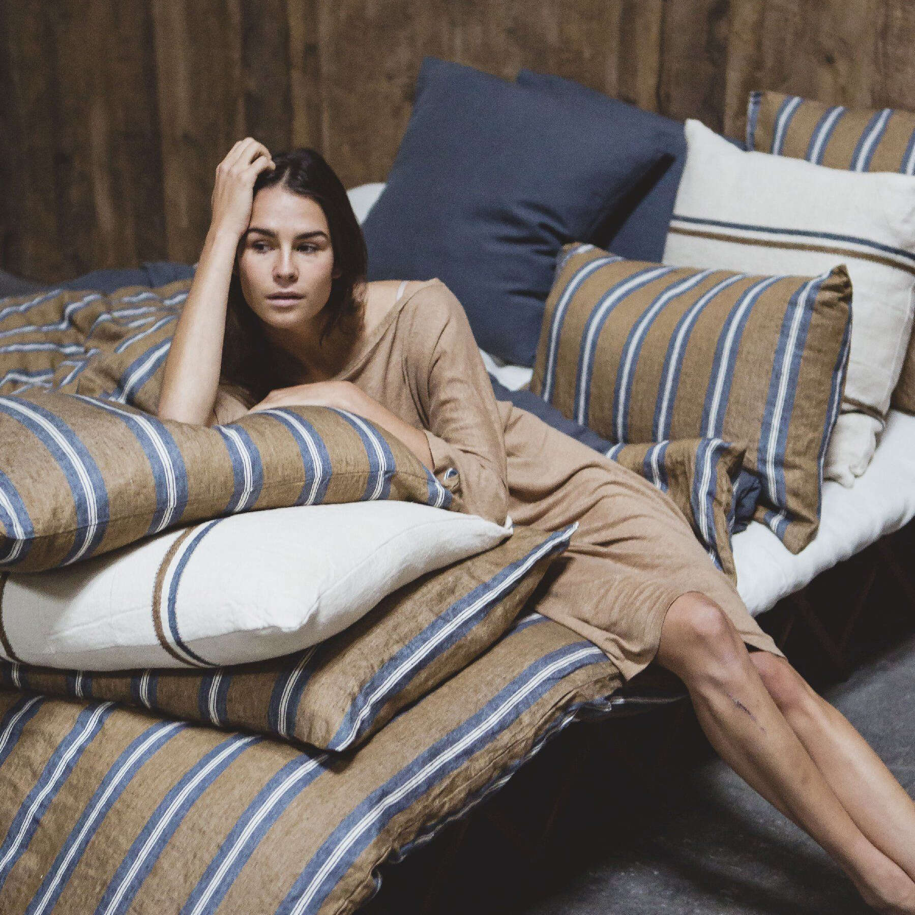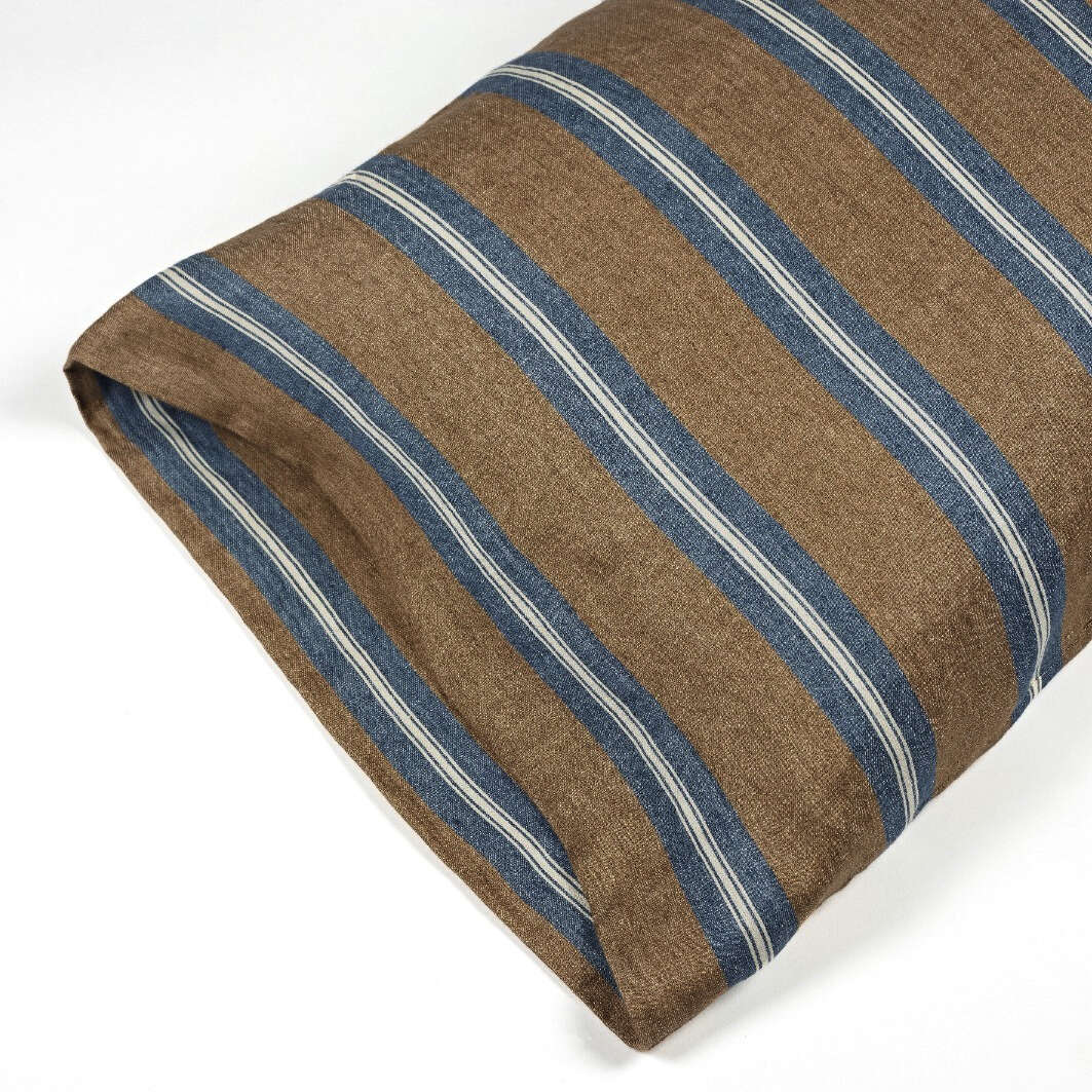 Salem is our classic bed linen fabric in a new bronze, navy and oyster stripe. This is the kind of stripe that works for lots of bedrooms. Mixed with the new Auburn coverlet and pillows, it is smashing!