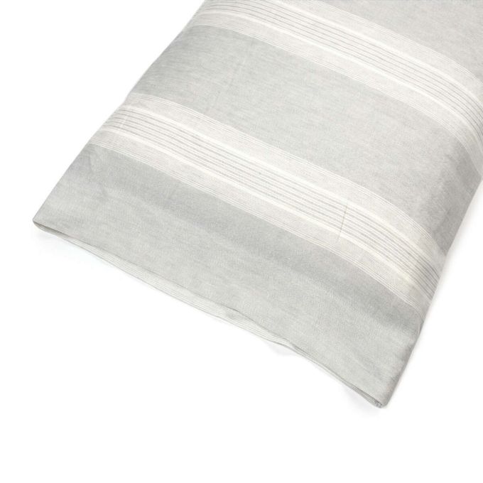Oyster stripes sitting on a subtle gray herringbone ground, which has a slightly water colored look. It’s become a Libeco classic.
