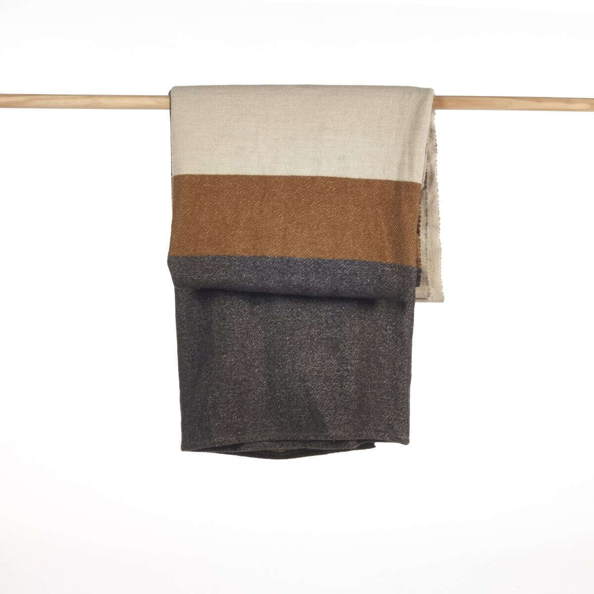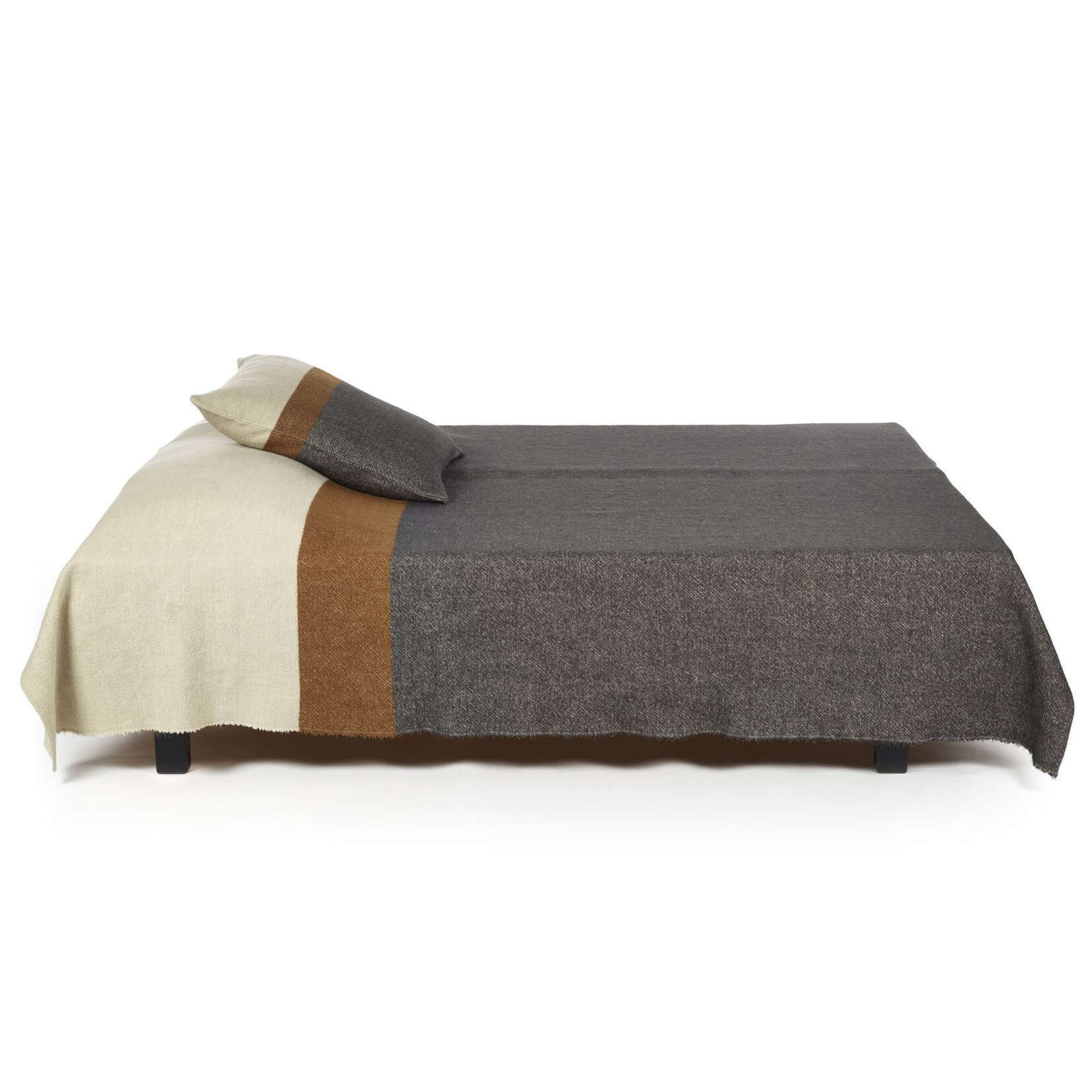 As is usual with our linen/wool coverlets, there is a seam down the middle, and in this case, the stripes match up.