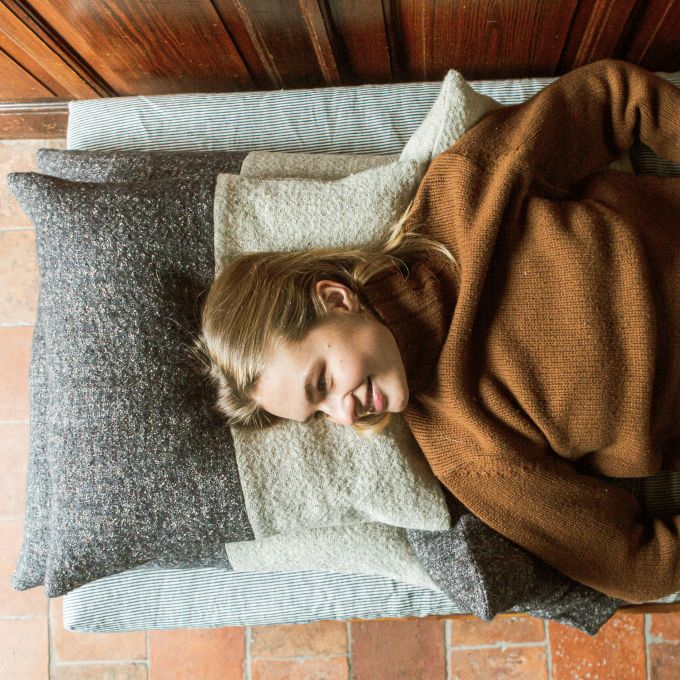 This new pillow collection in a soft and supple linen/wool is a real beauty! The pillows are bi-color. Half is a mélange of smoke and rust colors and the other half is natural.