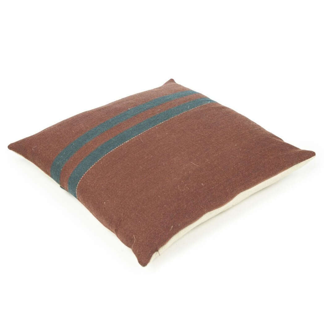 Our new Juniper pillow covers have a mysterious merlot-brown ground, and a contrasting back with spruce green stripes. Two looks in one!