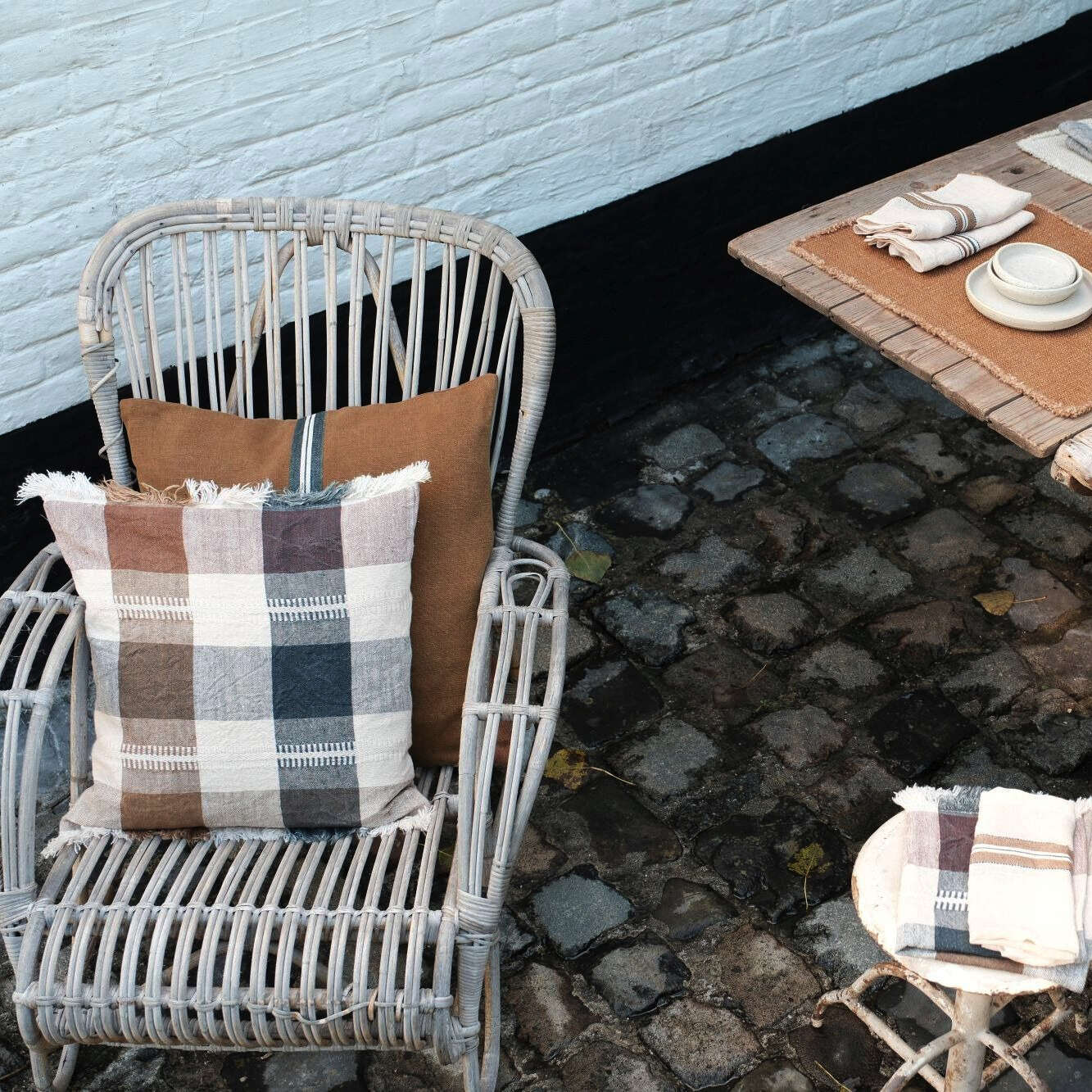 The main colors include warm oak, rusty brown, gray blue, and dusty off-white. But the beauty of checks lies in the way colors cross and blend, creating endless subtle nuances.