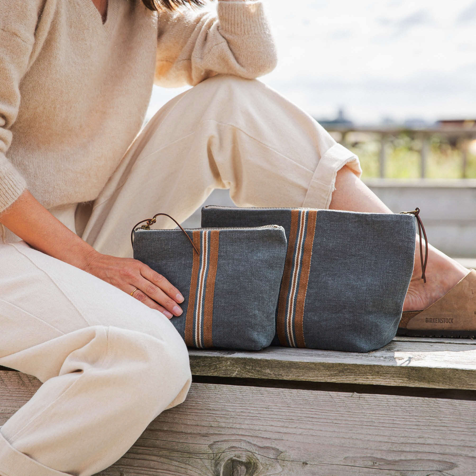 The bags are available in the River color and the stripe details are all in a pure linen trim.