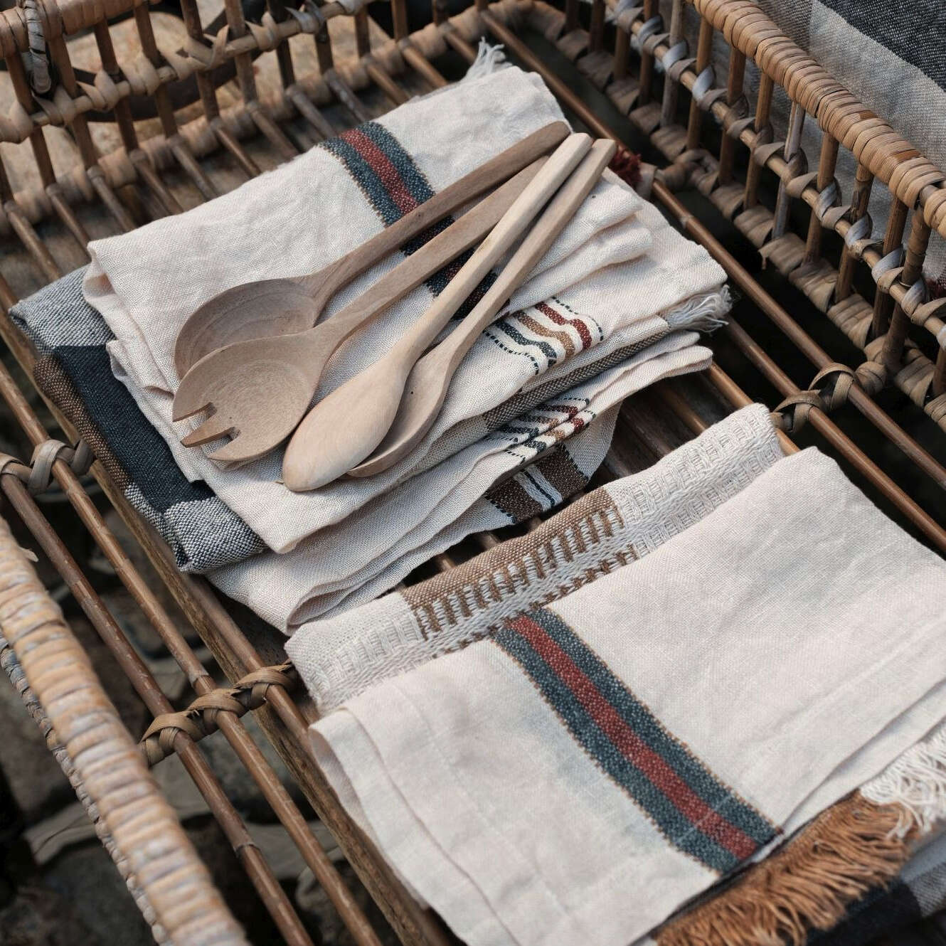 Unfold your linens completely before washing. Do not overload the machine. Wash your linens at max. 40°C - 104°F. Use a mild soap. Avoid chlorine bleach. If possible, line dry, it’s best for linen and the environment. If using a tumbler, dry on medium heat, do not over dry. Iron with steam on slightly damp linen (best the inside of the fabric).