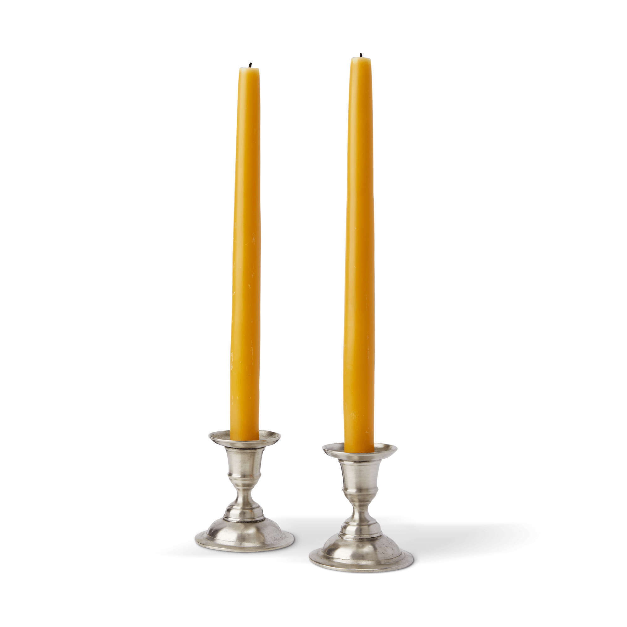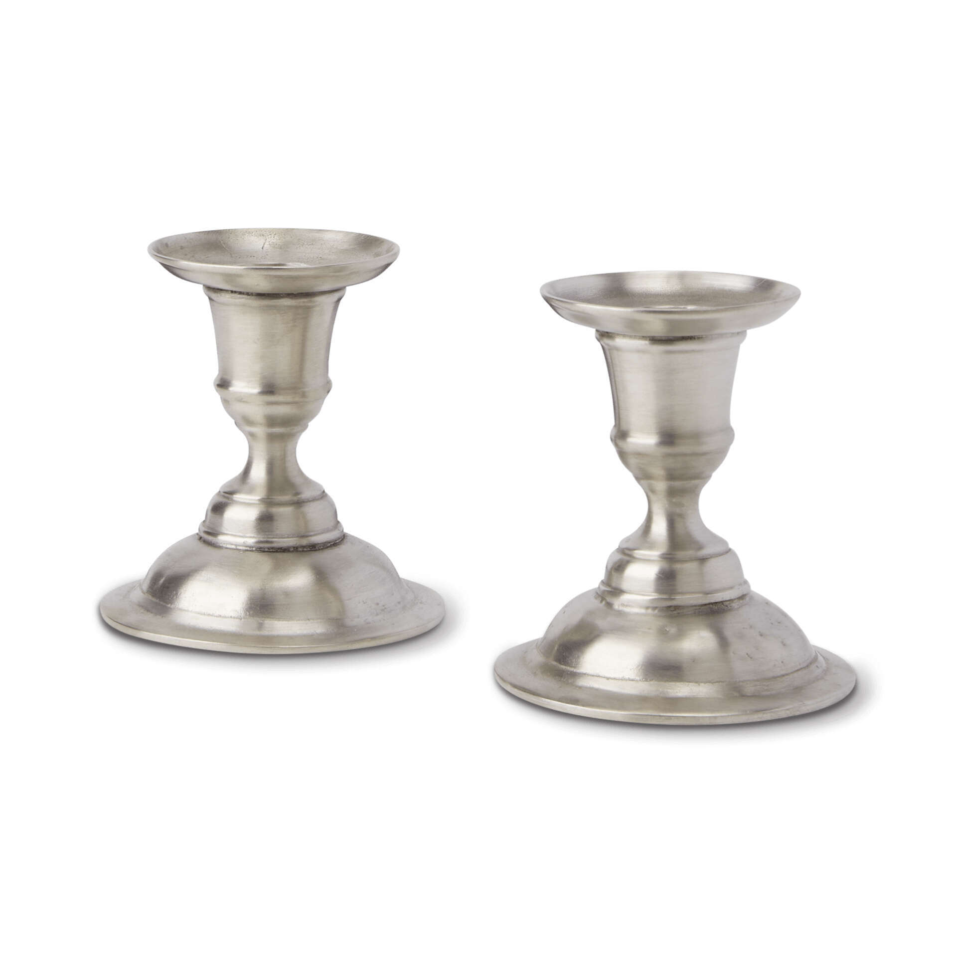 Our Martina all-pewter candlesticks are cousins of the ever-popular Marta, reimagined at the request of a restaurant client to have a slightly smaller base, and therefore taking up less precious real estate on the table. These pieces were loosely inspired by English antique designs, and hold single tapers. Our candle holders effortlessly display well with each other; we strongly encourage mixing different styles and heights on your table or wherever you choose to enjoy the warm ambience of candlelight.
