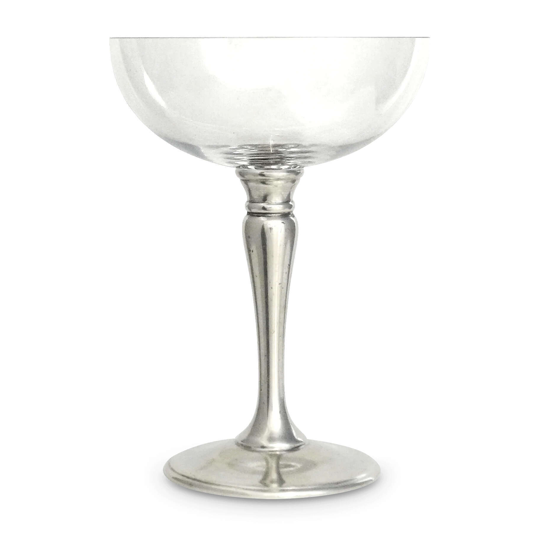 Our champagne/cocktail coupe perfectly harmonizes the allure of lead-free European crystal with the lustrous beauty of Italian pewter. A silhouette that brings to mind the speakeasies of the 1920s as much as the most fashionable cocktail lounges of today. This one is sure to bring a smile to their faces.