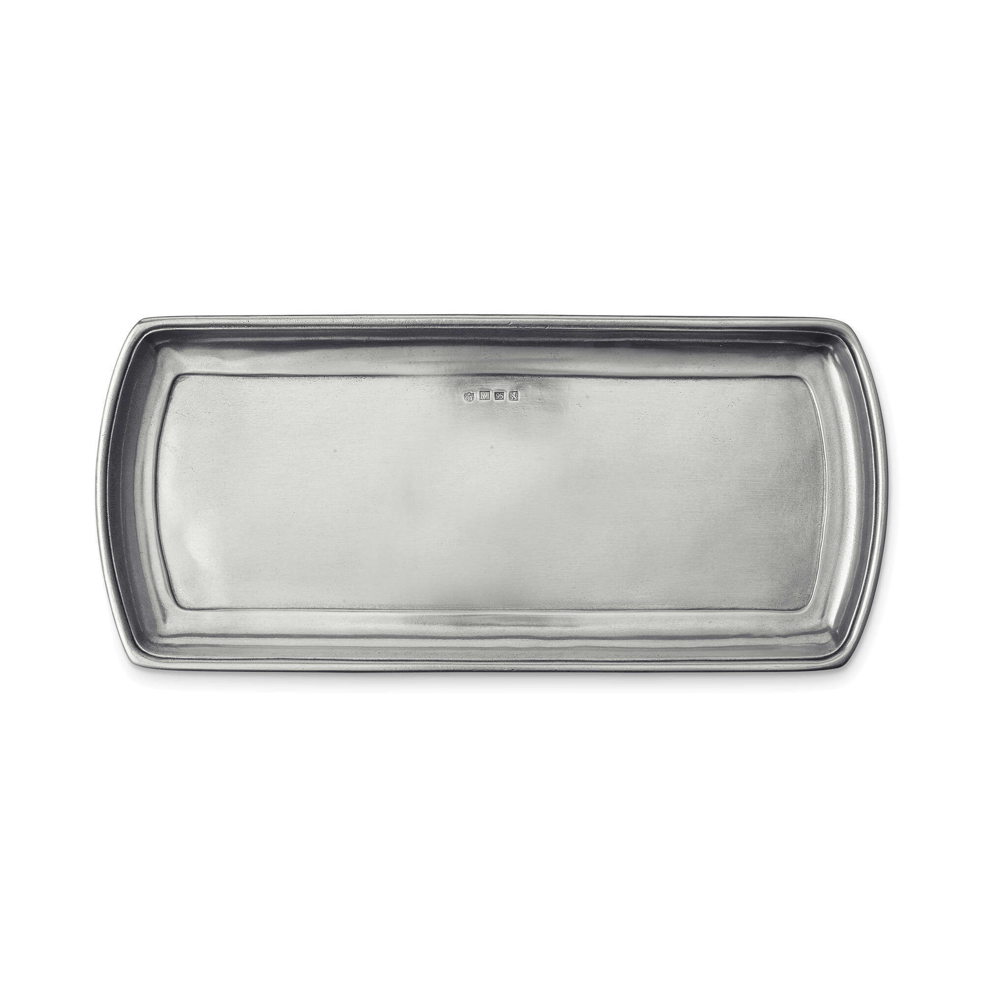 This narrow pewter tray features classic styling in a more contemporary shape that, we’ve found, is quite multi-talented. The elongated shape effortlessly accommodates a pound cake, but also coffee service, martinis for two, or even a vanity set. Trays of any shape make thoughtful gifts, especially when engraved with a monogram, message or special date.