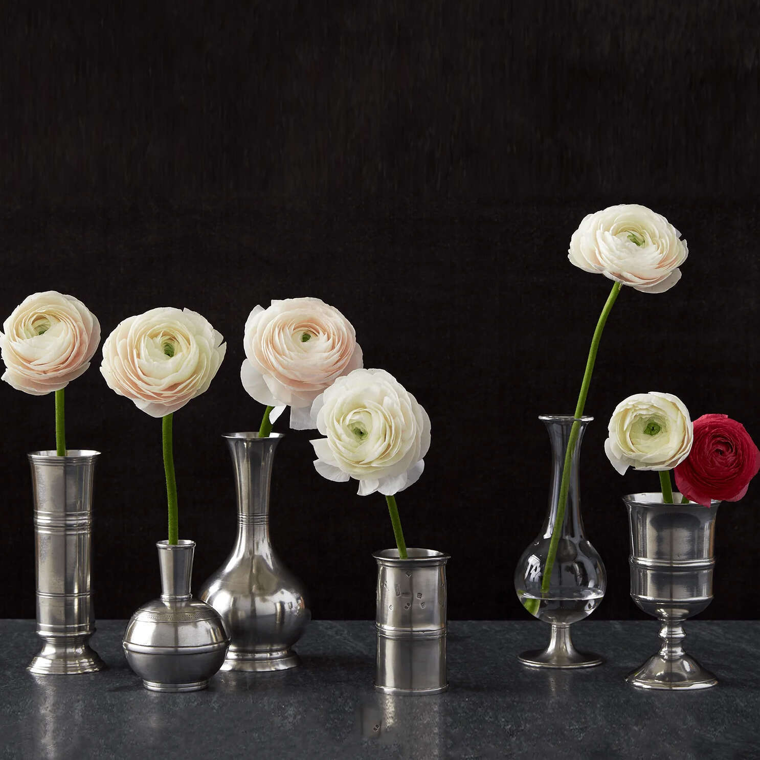We at MATCH do not shy away from large, lush floral arrangements, but we also are inclined to spotlight a single spectacular stem, and this pewter bud vase is the perfect platform. Simply add a single peony, several large roses or ranunculus and, as our founder likes to say, "it does the work for you." It also makes a thoughtful gift, especially when presented with any of the aforementioned stems.