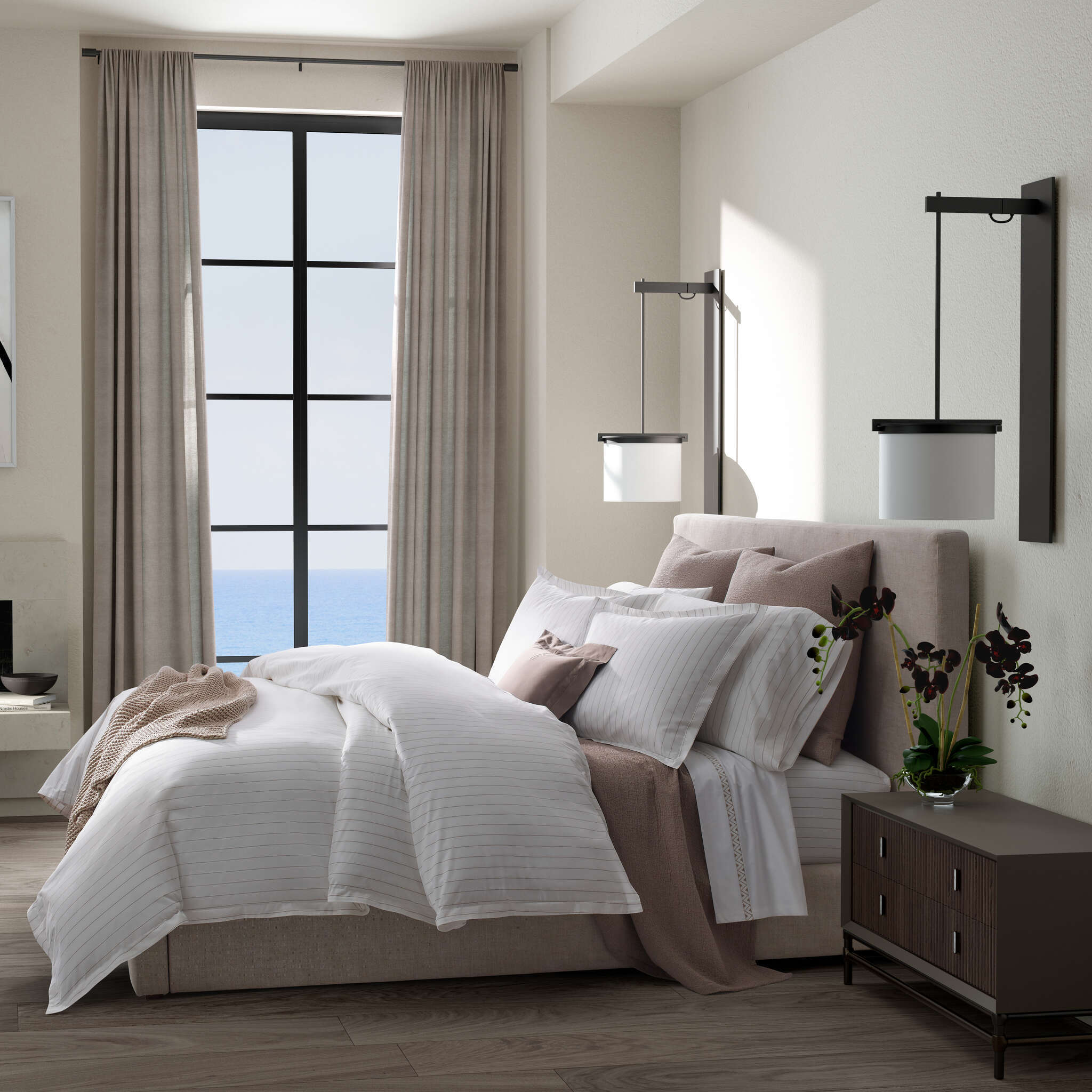 Amalfi is a handsome pinstripe design, crafted from long-staple cotton percale for a refined, enduring quality. With a special finish that creates a remarkably soft hand-feel, this is a true classic: ideal for effortless mix and match styling.