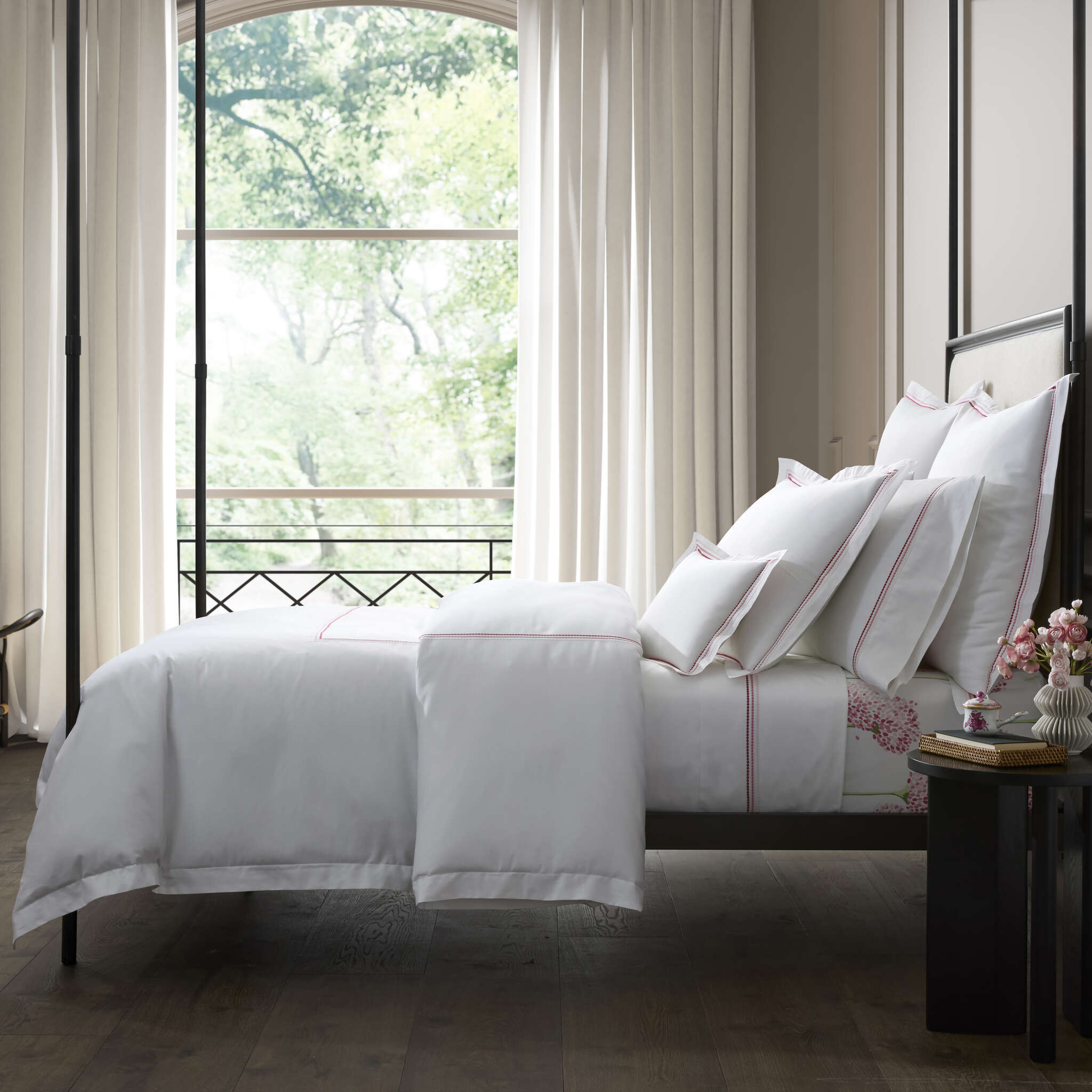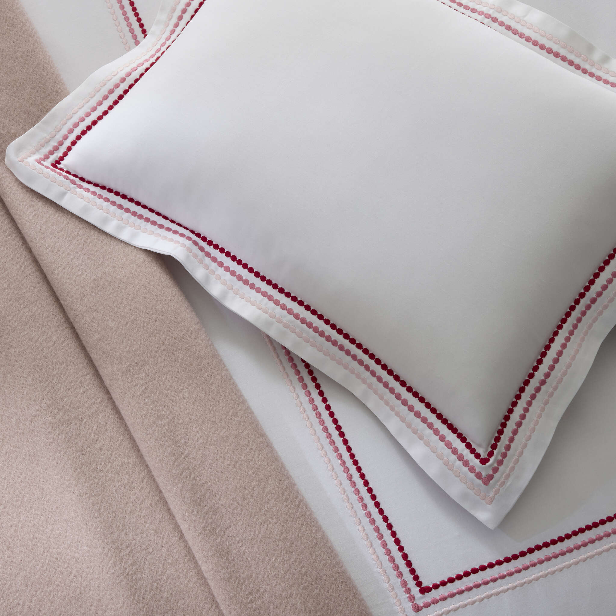 Amara Triple Pearl is a delicate embroidered design featuring a trio of pearl-shaped strands in ombré shades. The triple pearl motif lends a creative touch to lustrous Amara sateen.