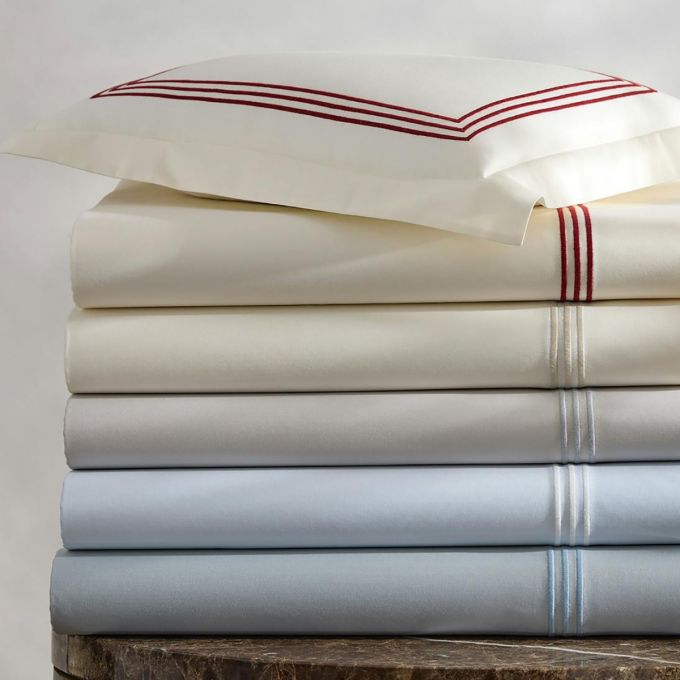 A much anticipated addition to our signature collection, Bel Tempo Nocturne brings Matouk's iconic embroidery to our beloved sateen sheeting for the first time. The flat sheet is specially finished with a return embroidery, a detail usually reserved for our bespoke designs. Bel Tempo Nocturne is offered in a diverse palette of muted neutrals and bold contrasts.