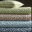 Gabriel is a Matouk Schumacher print featuring a striking geometric motif and complementary corded edge. Reminiscent of a finely woven tapestry, its design introduces dynamic movement and dimension to the bed—boldly graphic yet elegantly refined.